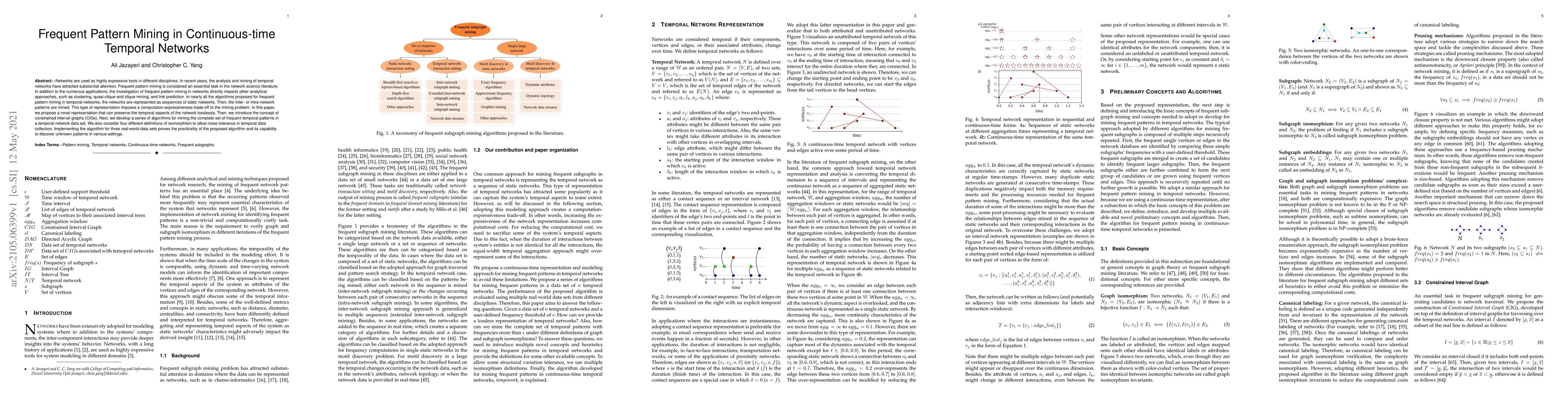 This paper proposes a novel representation for frequent pattern mining in continuous-time temporal networks using constrained interval graphs (CIGs) to preserve temporal aspects losslessly. It introduces algorithms for discovering frequent temporal patterns and evaluates their effectiveness on real-world datasets.
