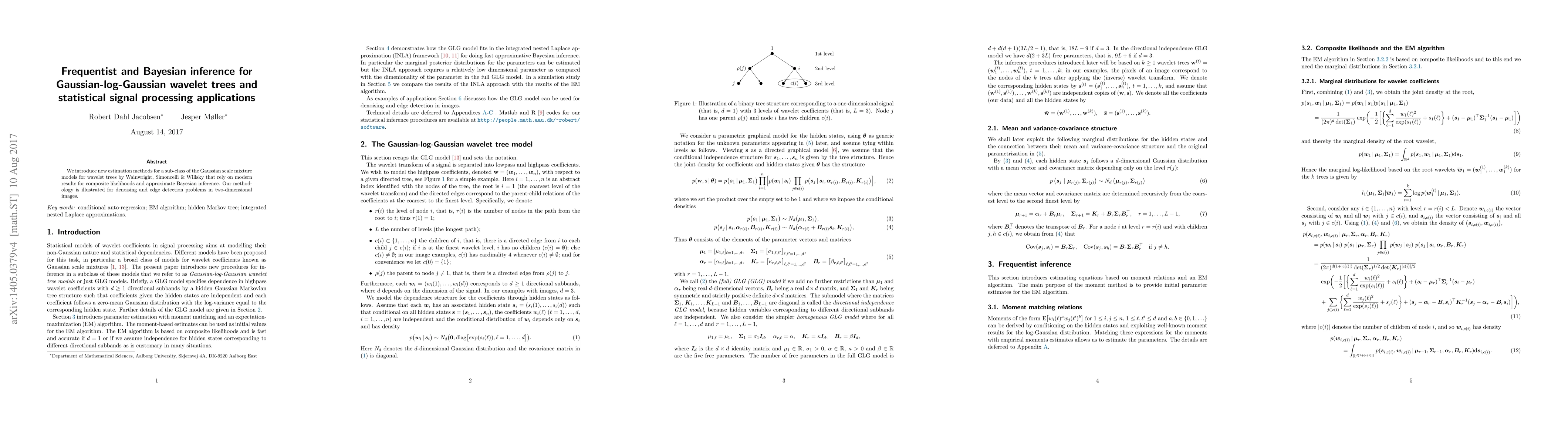 We introduce new estimation methods for a sub-class of the Gaussian scale mixture models for wavelet trees by Wainwright, Simoncelli & Willsky that rely on modern results for composite likelihoods and approximate Bayesian inference. Our methodology is illustrated for denoising and edge detection problems in two-dimensional images.