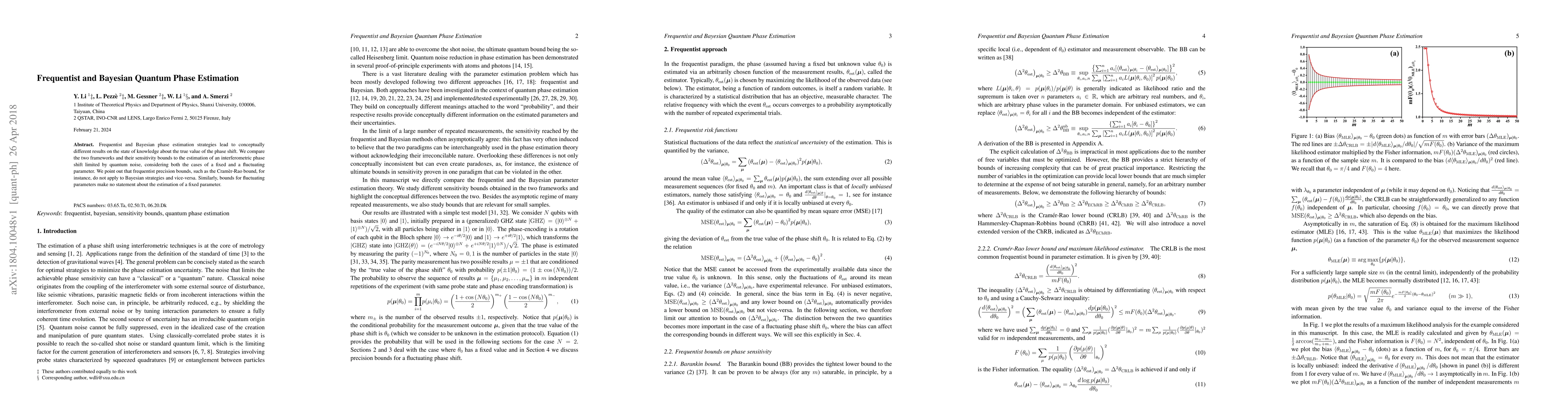 This paper compares frequentist and Bayesian approaches to quantum phase estimation, highlighting their differing implications for knowledge about phase shifts. It finds that frequentist precision bounds like the Cramér-Rao bound do not apply to Bayesian methods, and vice versa, with each framework having distinct sensitivity to fixed versus fluctuating parameters.