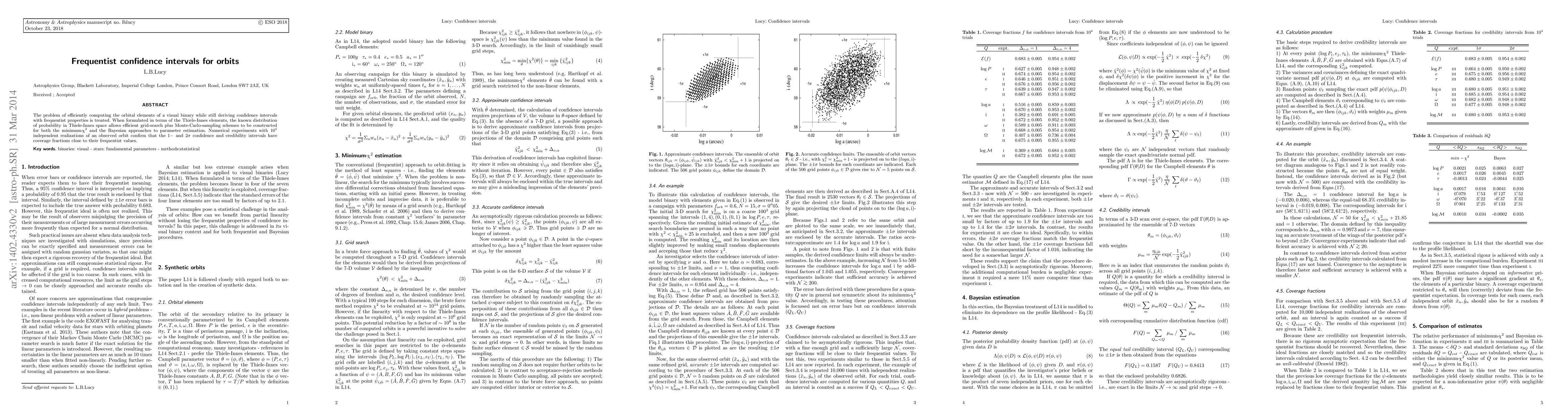 The problem of efficiently computing the orbital elements of a visual binary while still deriving confidence intervals with frequentist properties is treated. When formulated in terms of the Thiele-Innes elements, the known distribution of probability in Thiele-Innes space allows efficient grid-search plus Monte-Carlo-sampling schemes to be constructed for both the minimum-$\!\chi^{2}$ and Bayesian approaches to parameter estimation. Numerical experiments with $10^{4}$ independent realizations of an observed orbit confirm that the $1-$ and $2\sigma$ confidence and credibility intervals have coverage fractions close to their frequentist values. \keywords{binaries: visual - stars: fundamental parameters - methods:statistical}
