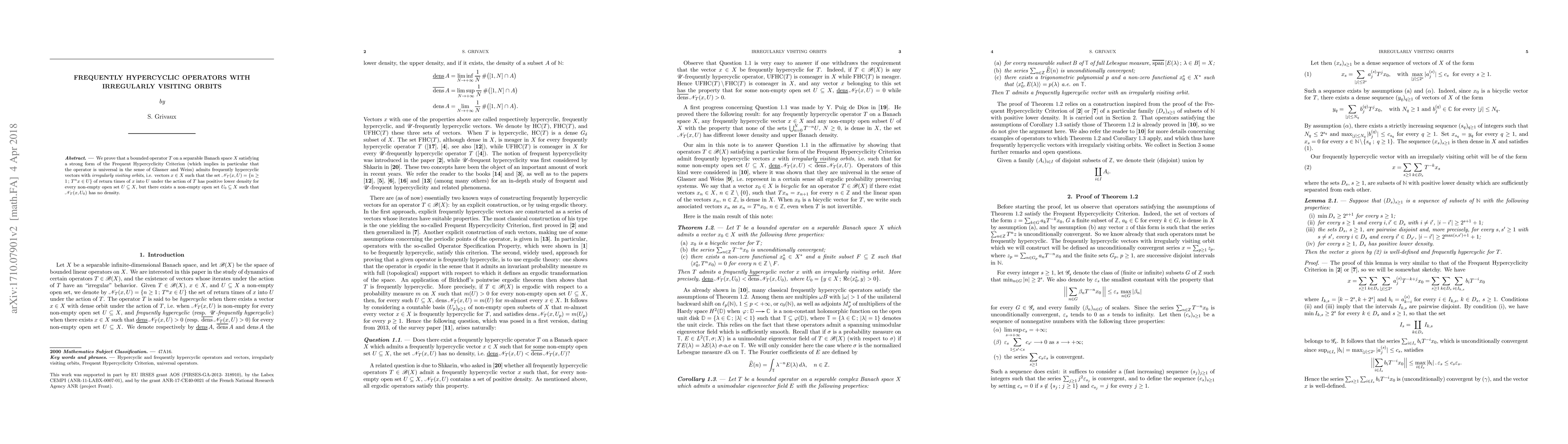 We prove that a bounded operator $T$ on a separable Banach space $X$ satisfying a strong form of the Frequent Hypercyclicity Criterion (which implies in particular that the operator is universal in the sense of Glasner and Weiss) admits frequently hypercyclic vectors with irregularly visiting orbits, i.e. vectors $x\in X$ such that the set $\mathcal{N}_T(x,U)=\{n\ge 1\,;\,T^{n}x\in U\}$ of return times of $x$ into $U$ under the action of $T$ has positive lower density for every non-empty open set $U\subseteq X$, but there exists a non-empty open set $U_0\subseteq X$ such that $\nt{x}{U_0}$ has no density.