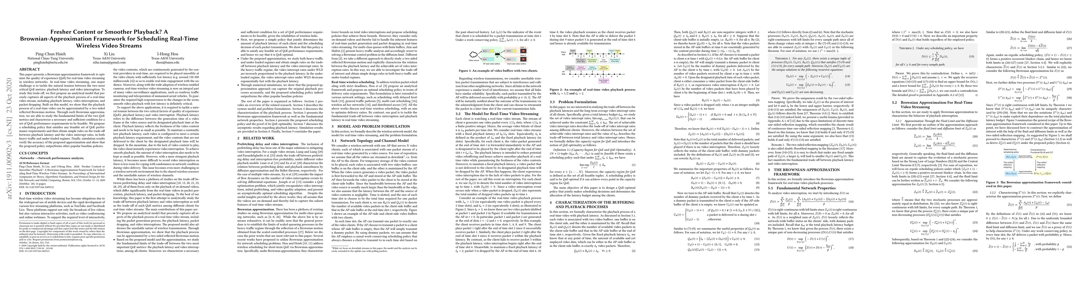 This research introduces a mathematical framework using Brownian motion to optimize real-time wireless video streaming, balancing playback latency and interruptions. The approach provides guidelines for designing scheduling policies that improve viewer experience under various network conditions.
