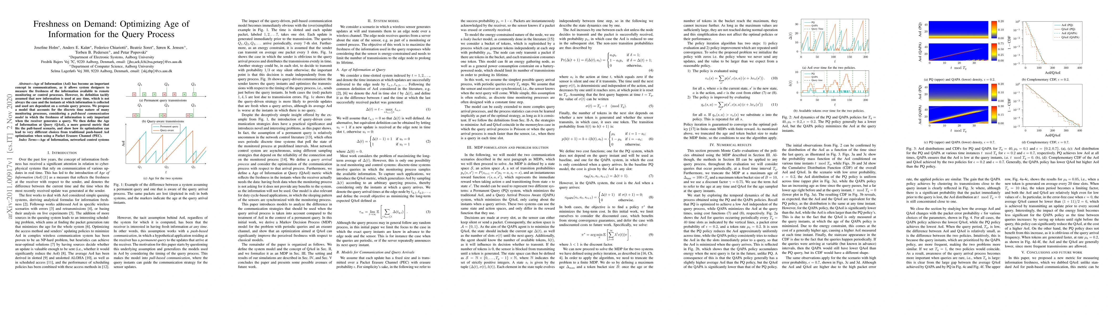 Age of Information (AoI) has become an important concept in communications, as it allows system designers to measure the freshness of the information available to remote monitoring or control processes. However, its definition tacitly assumed that new information is used at any time, which is not always the case and the instants at which information is collected and used are dependent on a certain query process. We propose a model that accounts for the discrete time nature of many monitoring processes, considering a pull-based communication model in which the freshness of information is only important when the receiver generates a query. We then define the Age of Information at Query (QAoI), a more general metric that fits the pull-based scenario, and show how its optimization can lead to very different choices from traditional push-based AoI optimization when using a Packet Erasure Channel (PEC).