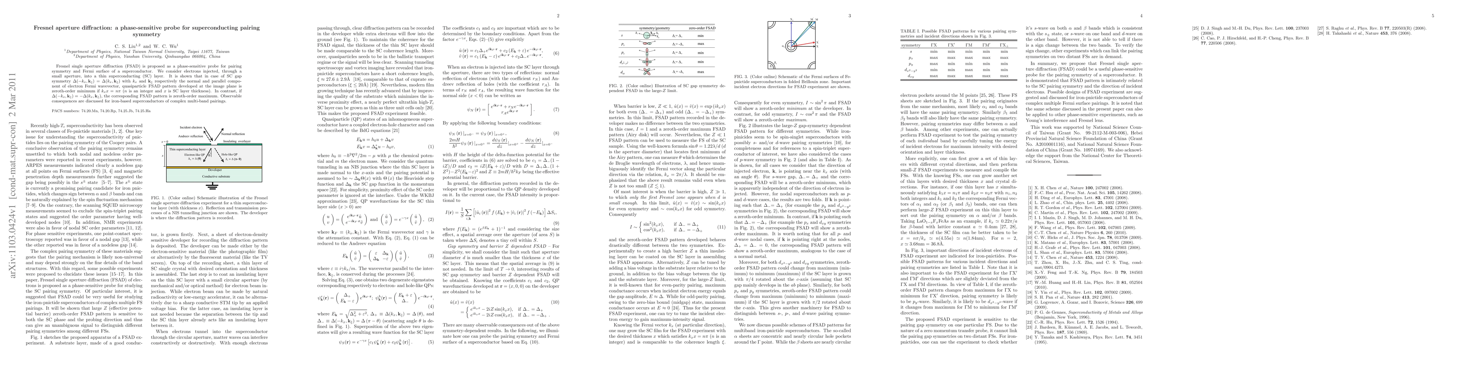 Fresnel single aperture diffraction (FSAD) is proposed as a phase-sensitive probe for pairing symmetry and Fermi surface of a superconductor. We consider electrons injected, through a small aperture, into a thin superconducting (SC) layer. It is shown that in case of SC gap symmetry $\Delta(-k_x,\mathbf{k}_\parallel)=\Delta(k_x,\mathbf{k}_\parallel)$ with $k_x$ and $\mathbf{k}_\parallel$ respectively the normal and parallel component of electron Fermi wavevector, quasiparticle FSAD pattern developed at the image plane is zeroth-order minimum if $k_x x=n\pi$ ($n$ is an integer and $x$ is SC layer thickness). In contrast, if $\Delta(-k_x,\mathbf{k}_\parallel)=-\Delta(k_x, \mathbf{k}_\parallel)$, the corresponding FSAD pattern is zeroth-order maximum. Observable consequences are discussed for iron-based superconductors of complex multi-band pairings.