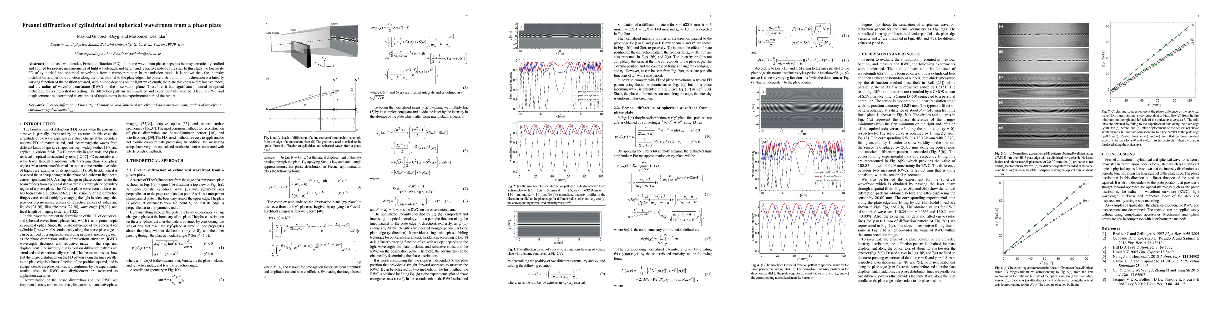 This paper formulates Fresnel diffraction of cylindrical and spherical wavefronts from a transparent phase plate, showing periodic intensity and linearly varying phase distributions. The study has significant potential for optical metrology and demonstrates applications in determining radius of wavefront curvature and displacement through simulations and experiments.