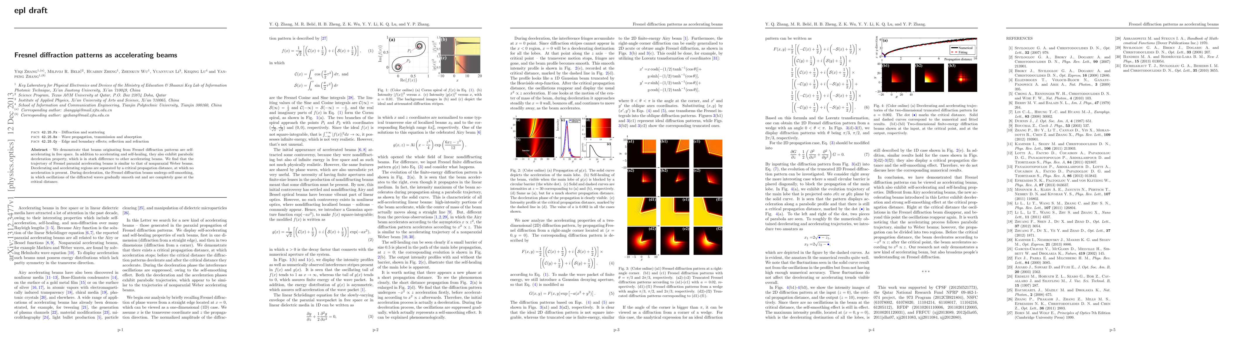 This research shows that beams derived from Fresnel diffraction patterns self-accelerate in free space, with unique parabolic deceleration, and exhibit self-smoothing during deceleration, contrasting with typical accelerating beams. The trajectory of these Fresnel beams parallels that of nonparaxial Weber beams, separated by a critical distance where no acceleration occurs.