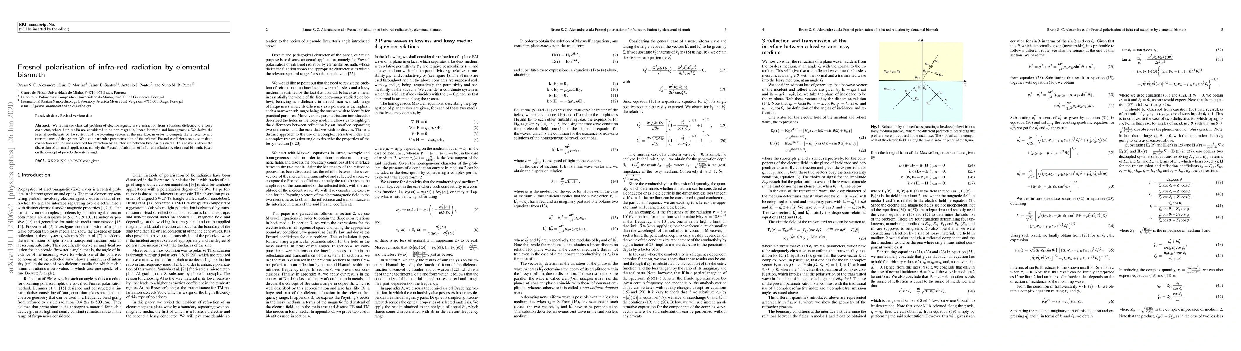 Researchers derived Fresnel coefficients for an interface between a non-magnetic dielectric and a lossy conductor to analyze infra-red radiation polarization by elemental bismuth, making connections to refraction in lossless media.