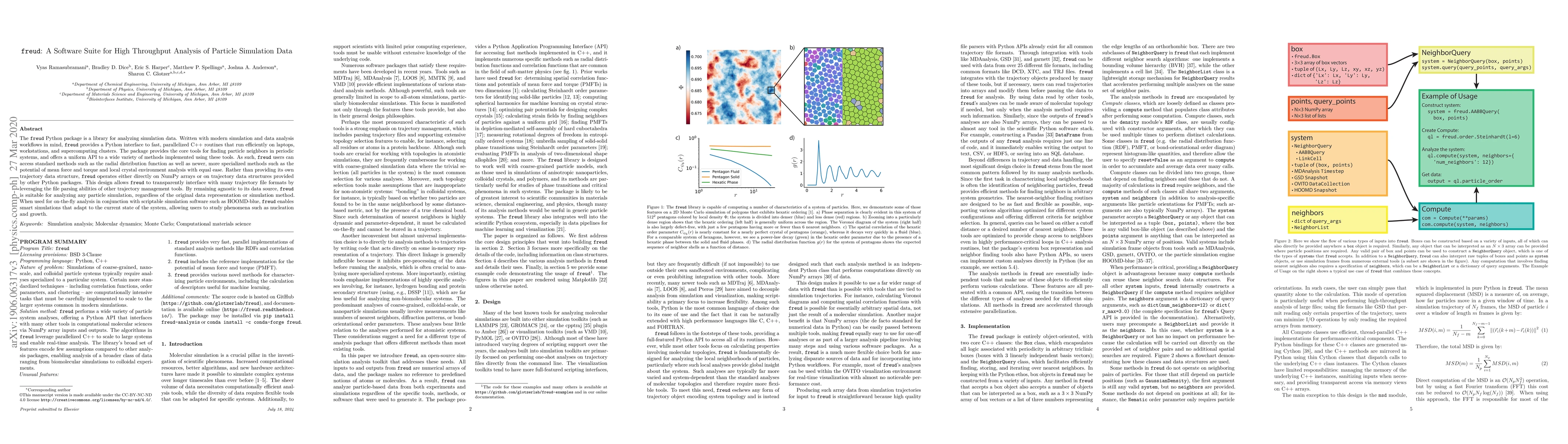 The freud Python package provides a powerful library for analyzing particle simulation data, allowing users to easily access various methods and adapt simulations in real-time.
