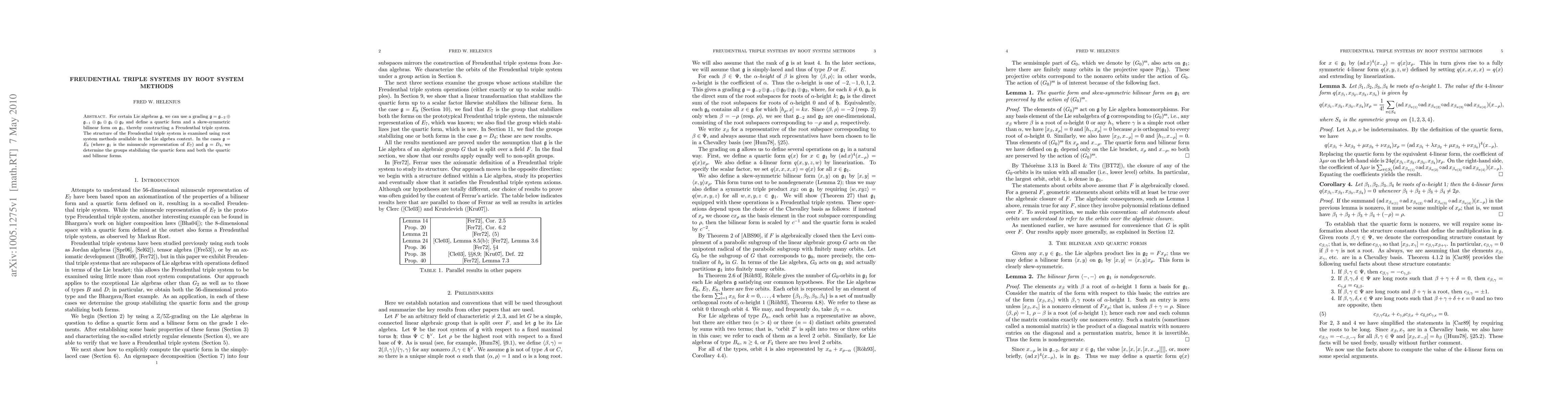 For certain Lie algebras g, we can use a Z/5Z-grading and define a quartic form and a skew-symmetric bilinear form on the degree 1 component, g_1, thereby constructing a Freudenthal triple system. The structure of the Freudenthal triple system is examined using root system methods available in the Lie algebra context. In the cases g = E_8 (where g_1 is the minuscule representation of E_7) and g = D_4, we determine the groups stabilizing the quartic form and both the quartic and bilinear forms.