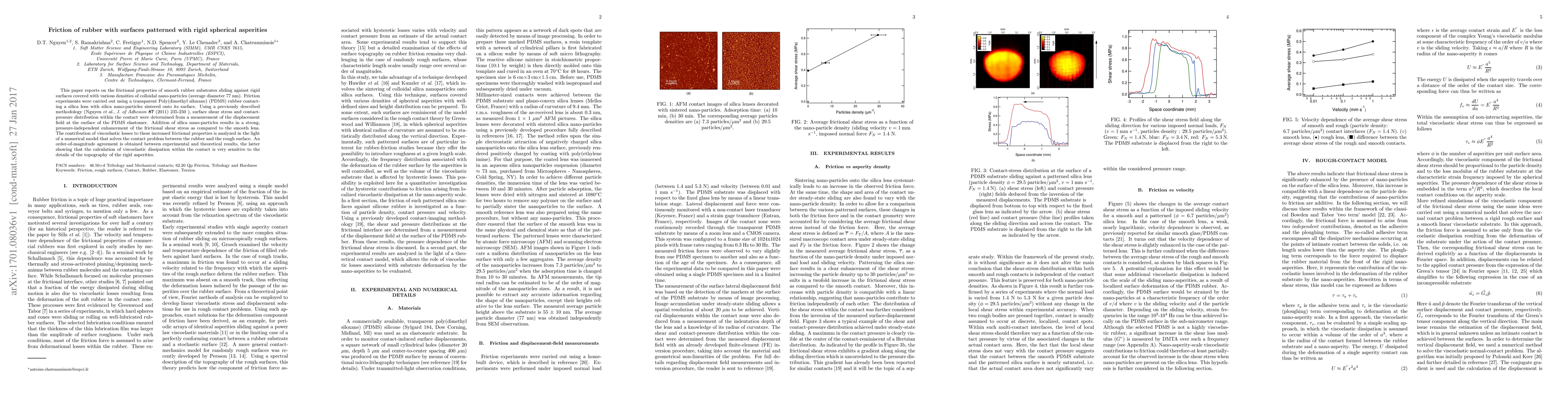 This study investigates the frictional properties of rubber sliding against surfaces with varying densities of nano-particles, finding a significant enhancement in frictional shear stress due to the presence of nano-particles. The research combines experimental and numerical analysis to understand the viscoelastic losses contributing to the increased friction.
