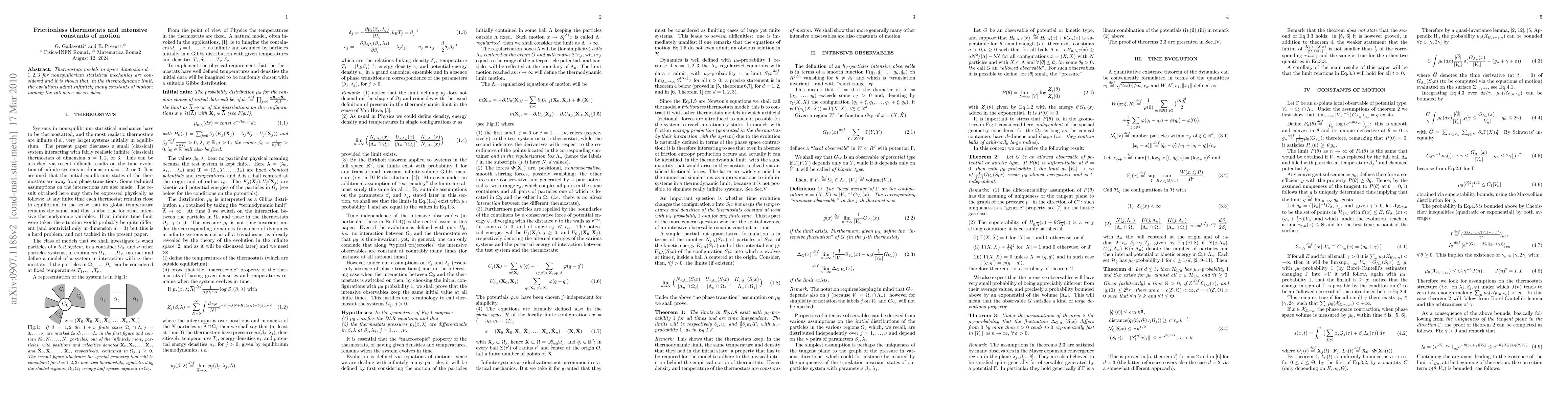 This paper examines thermostat models in one-, two-, and three-dimensional spaces for nonequilibrium statistical mechanics, demonstrating that, in the thermodynamic limit, the systems exhibit infinitely many constants of motion, specifically the intensive observables.