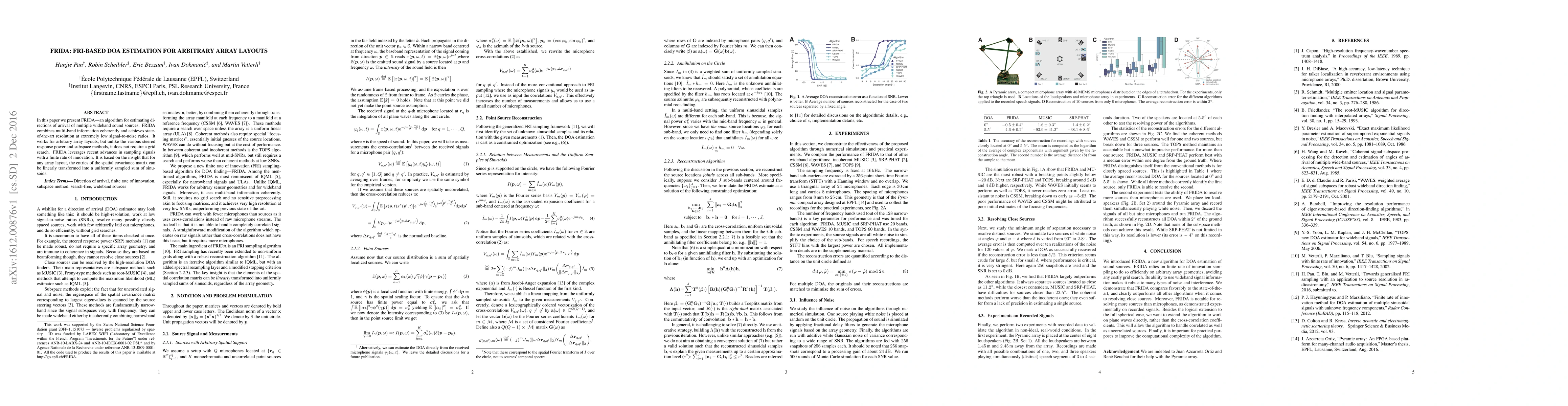 In this paper we present FRIDA---an algorithm for estimating directions of arrival of multiple wideband sound sources. FRIDA combines multi-band information coherently and achieves state-of-the-art resolution at extremely low signal-to-noise ratios. It works for arbitrary array layouts, but unlike the various steered response power and subspace methods, it does not require a grid search. FRIDA leverages recent advances in sampling signals with a finite rate of innovation. It is based on the insight that for any array layout, the entries of the spatial covariance matrix can be linearly transformed into a uniformly sampled sum of sinusoids.