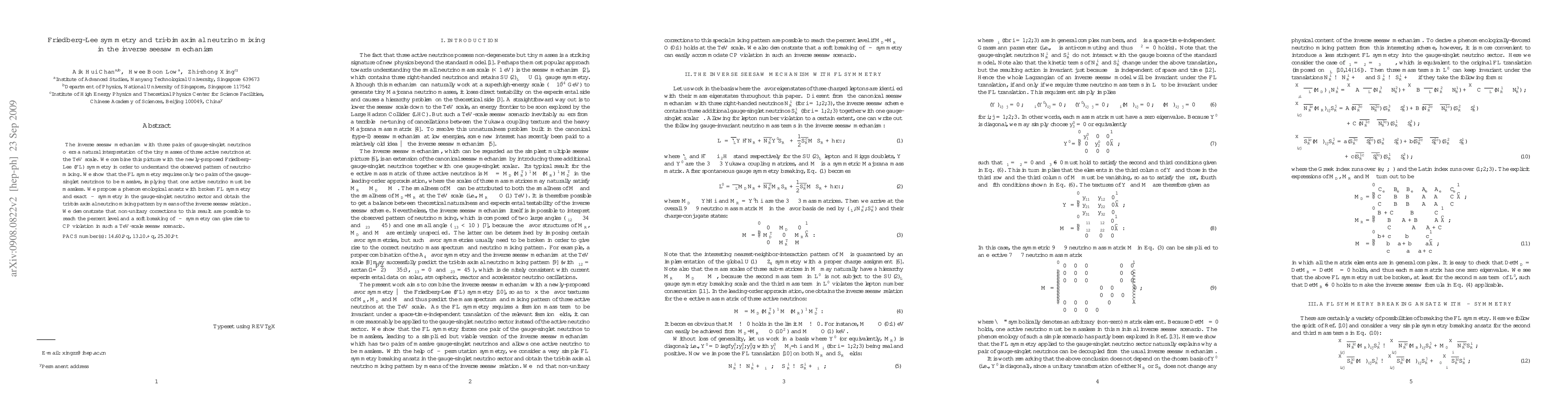 This paper explores the inverse seesaw mechanism with Friedberg-Lee symmetry to explain the tiny masses of active neutrinos and derive the tri-bimaximal mixing pattern. It proposes a broken FL symmetry and exact \mu-\tau symmetry to achieve this, allowing for CP violation via soft symmetry breaking.