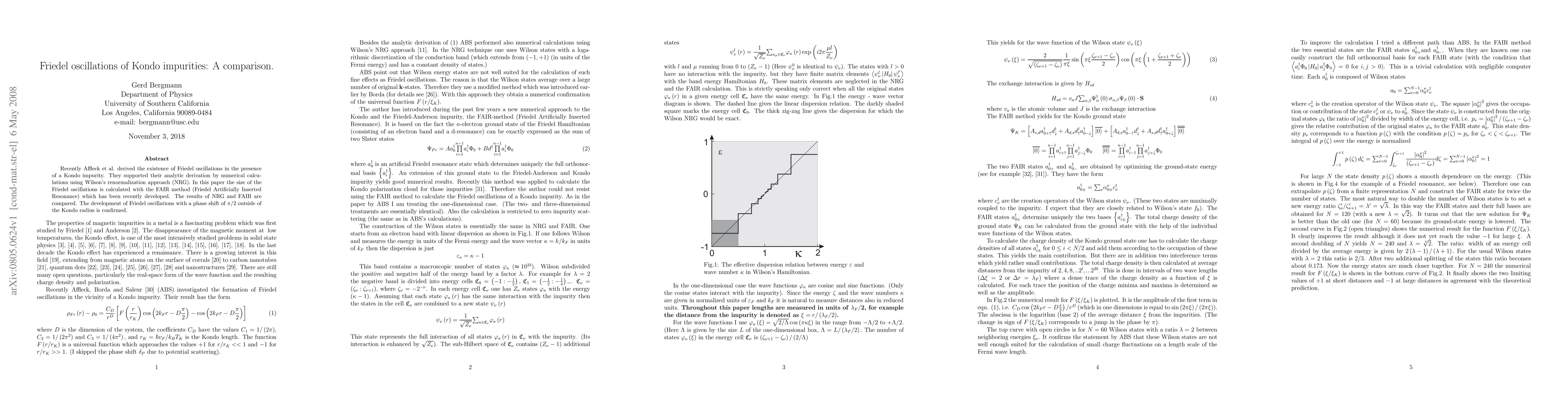 This paper compares the size of Friedel oscillations around Kondo impurities using the FAIR method and validates the results against numerical calculations from Wilson's NRG approach, confirming the development of oscillations with a phase shift of π/2 outside the Kondo radius.
