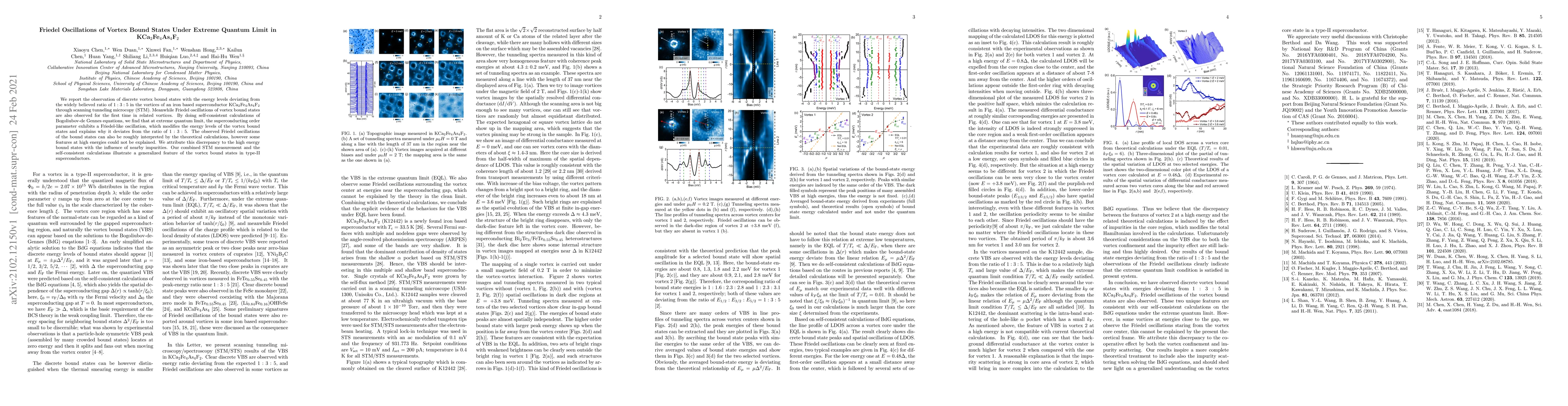 This paper reports the discovery of vortex bound states in KCa2Fe4As4F2 with energy levels deviating from the expected 1:3:5 ratio, observed via scanning tunneling microscopy. Theoretical calculations show Friedel oscillations in the superconducting order parameter at extreme quantum limits, explaining the observed deviations and providing a generalized feature of vortex bound states in type-II superconductors.