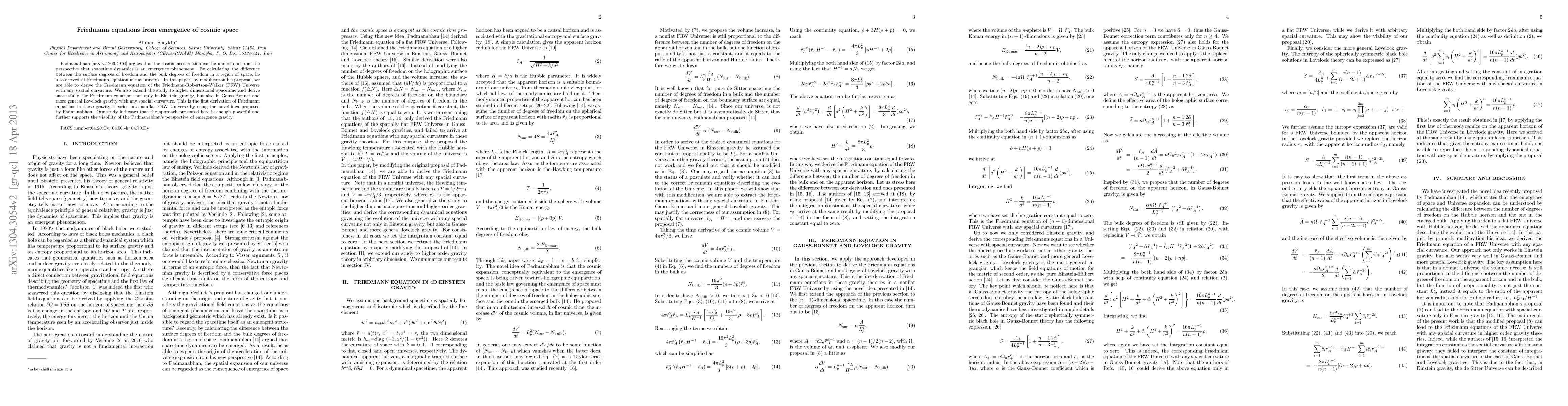 This paper extends Padmanabhan's idea of emergence gravity to derive Friedmann equations for a Friedmann-Robertson-Walker universe with any spatial curvature, including higher-dimensional spacetimes and various gravity theories like Einstein, Gauss-Bonnet, and Lovelock gravities. This marks the first successful derivation of Friedmann equations in nonflat universes using Padmanabhan's novel approach.
