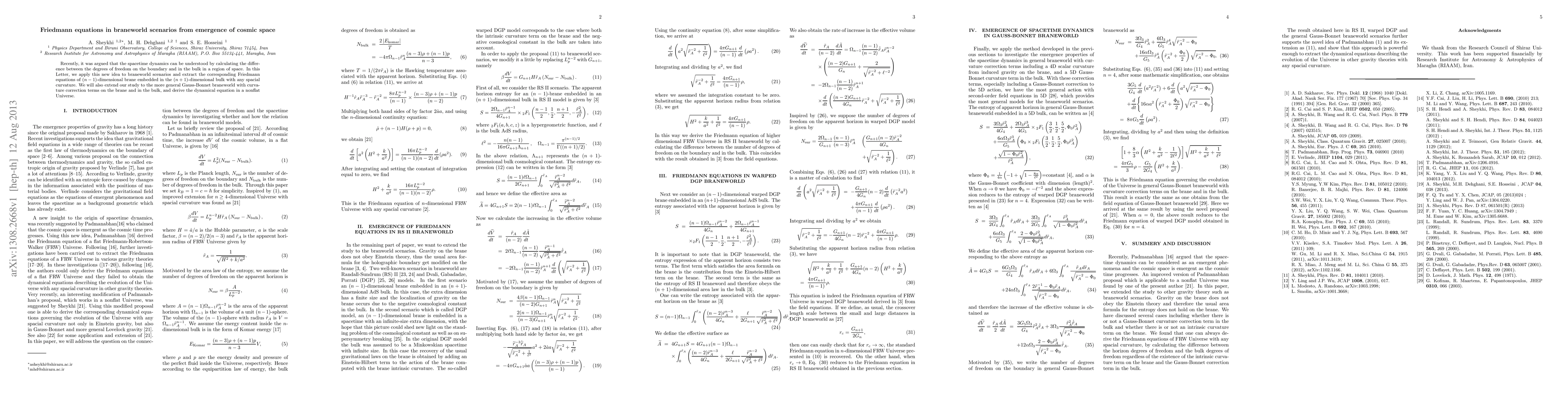 This paper derives Friedmann equations for braneworld scenarios by considering the difference in degrees of freedom between the brane and the bulk, extending the analysis to include Gauss-Bonnet corrections and nonflat universes. The study provides a new framework for understanding spacetime dynamics in braneworld models.