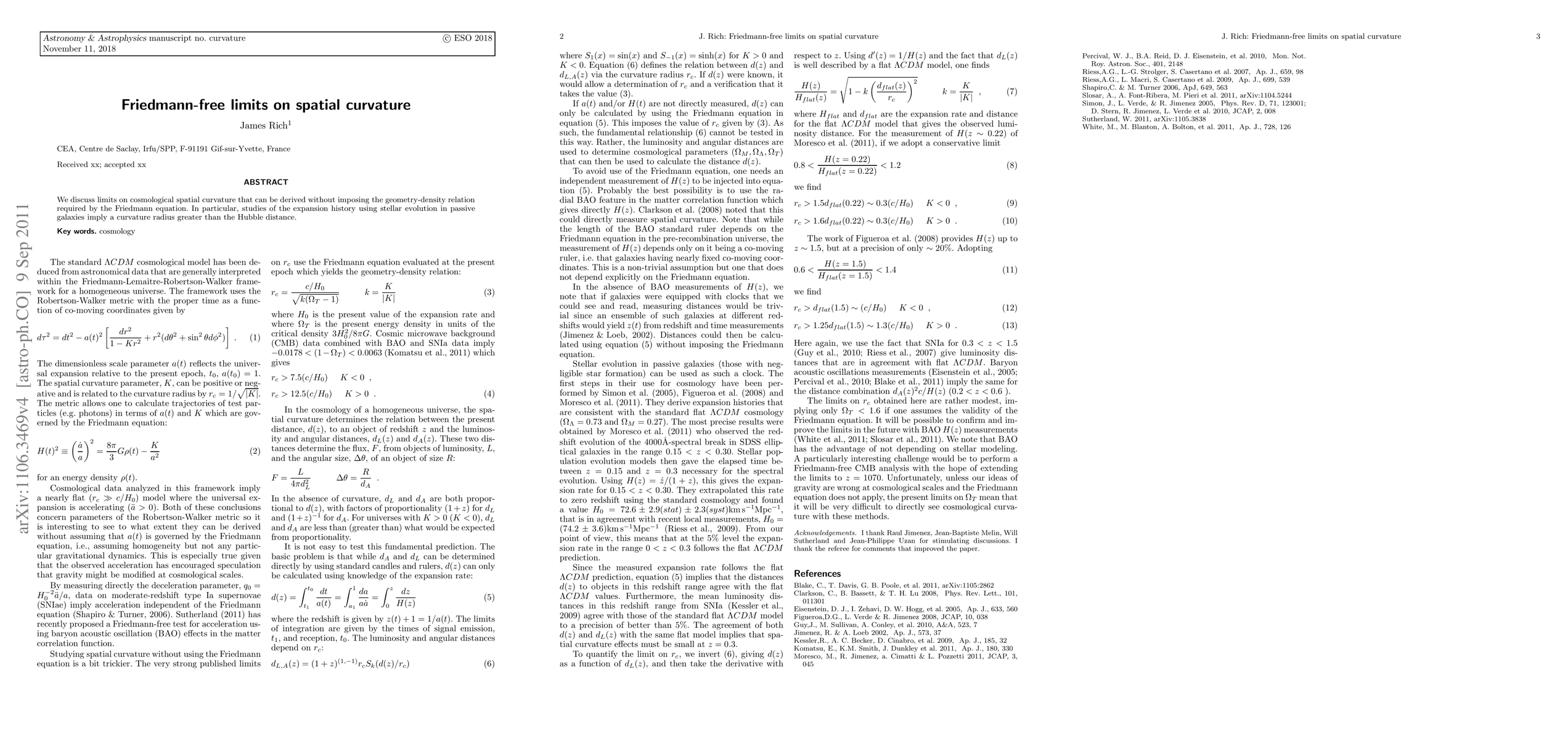 We discuss limits on cosmological spatial curvature that can be derived without imposing the geometry-density relation required by the Friedmann equation. In particular, studies of the expansion history using stellar evolution in passive galaxies imply a curvature radius greater than the Hubble distance.