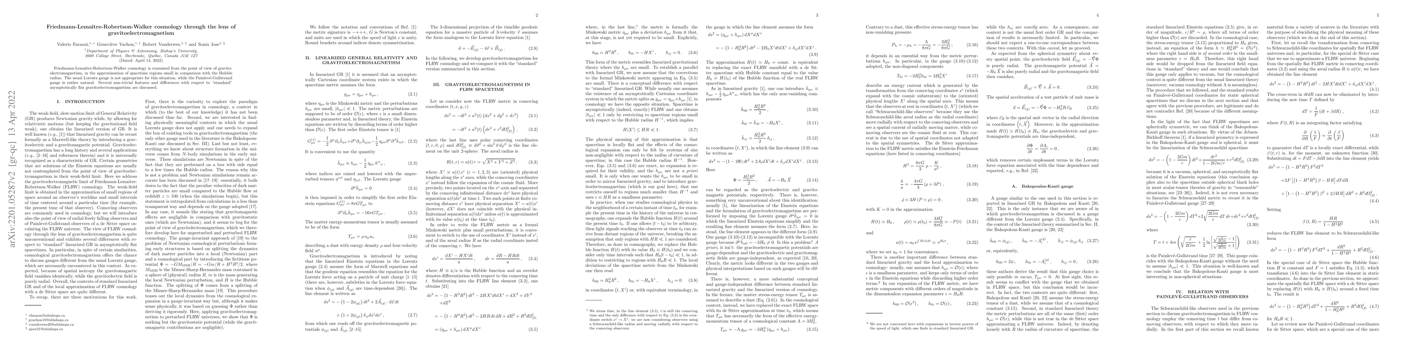 This paper explores Friedmann-Lemaître-Robertson-Walker cosmology using gravitoelectromagnetism, employing the Painlevé-Gullstrand gauge instead of the Lorentz gauge, and highlights several unique features differing from standard asymptotically flat gravitoelectromagnetism.