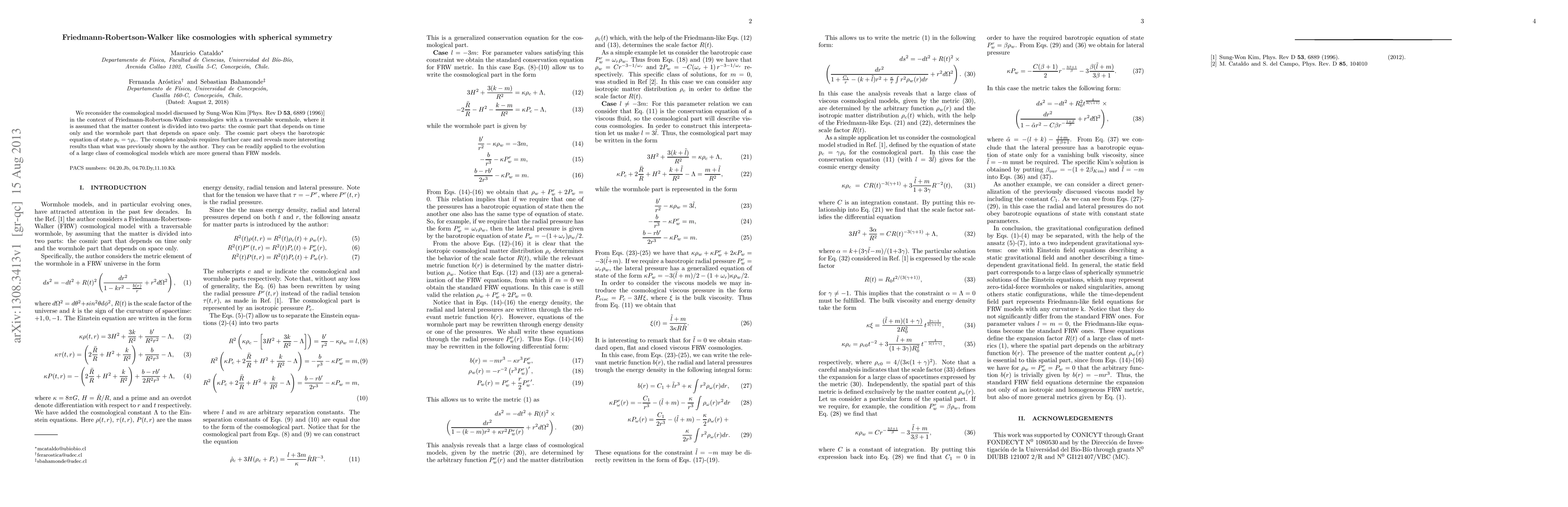 This paper revisits Sung-Won Kim's model of Friedmann-Robertson-Walker cosmologies with a traversable wormhole, dividing matter into cosmic and wormhole components. It provides a deeper analysis revealing more intricate results, applicable to a broader range of cosmological models beyond standard FRW models.