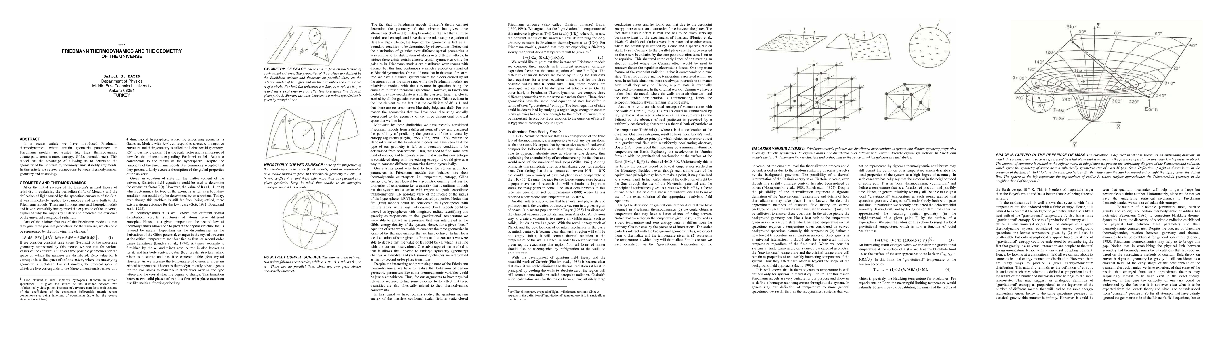 This paper reviews the concept of Friedmann thermodynamics, where geometric parameters in Friedmann models are analogous to thermodynamic variables, enabling the determination of the universe's geometry through thermodynamic stability arguments. The study highlights the interdisciplinary connections between thermodynamics, geometry, and cosmology.