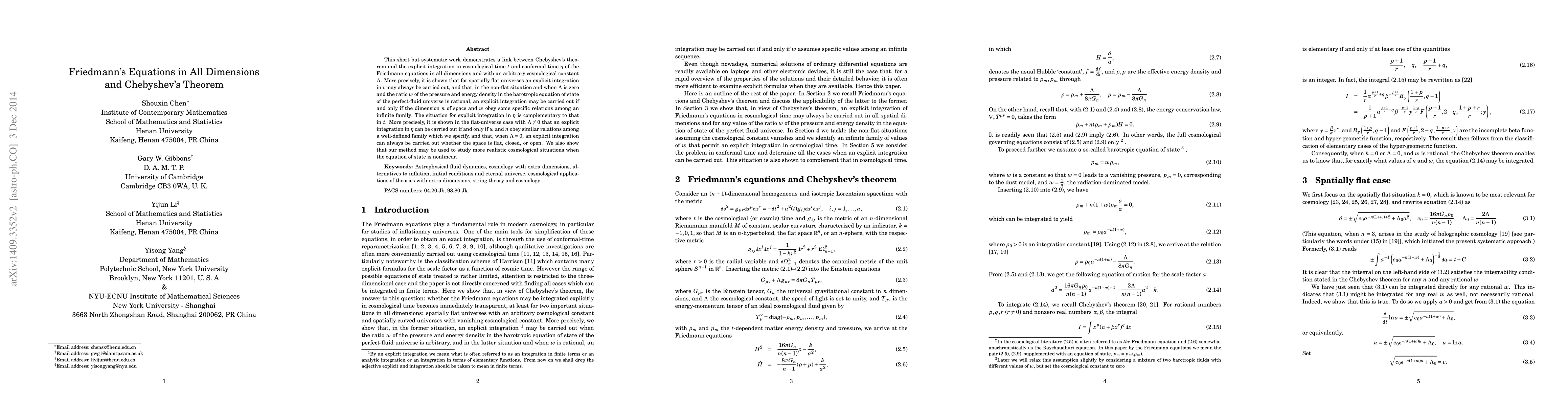 This short but systematic work demonstrates a link between Chebyshev's theorem and the explicit integration in cosmological time $t$ and conformal time $\eta$ of the Friedmann equations in all dimensions and with an arbitrary cosmological constant $\Lambda$. More precisely, it is shown that for spatially flat universes an explicit integration in $t$ may always be carried out, and that, in the non-flat situation and when $\Lambda$ is zero and the ratio $w$ of the pressure and energy density in the barotropic equation of state of the perfect-fluid universe is rational, an explicit integration may be carried out if and only if the dimension $n$ of space and $w$ obey some specific relations among an infinite family. The situation for explicit integration in $\eta$ is complementary to that in $t$. More precisely, it is shown in the flat-universe case with $\Lambda\neq0$ that an explicit integration in $\eta$ can be carried out if and only if $w$ and $n$ obey similar relations among a well-defined family which we specify, and that, when $\Lambda=0$, an explicit integration can always be carried out whether the space is flat, closed, or open. We also show that our method may be used to study more realistic cosmological situations when the equation of state is nonlinear.