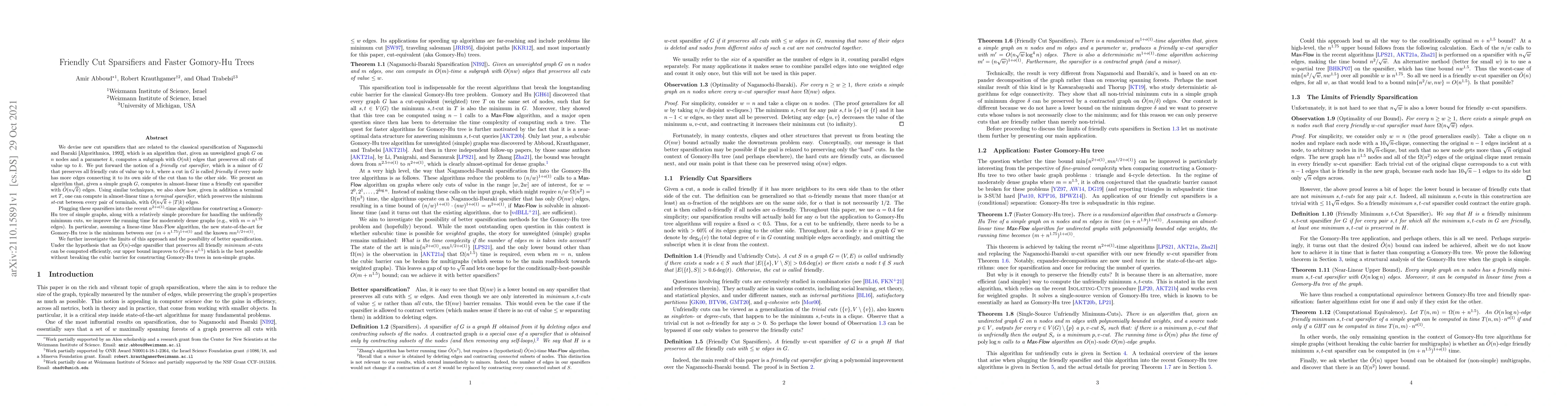 This paper introduces new friendly cut sparsifiers that preserve specific types of cuts in graphs, leading to an almost-linear time algorithm for computing them. These sparsifiers are used to improve the construction time of Gomory-Hu trees for moderately dense graphs, achieving a state-of-the-art running time of $(m+n^{1.75})^{1+o(1)}$ under certain conditions.