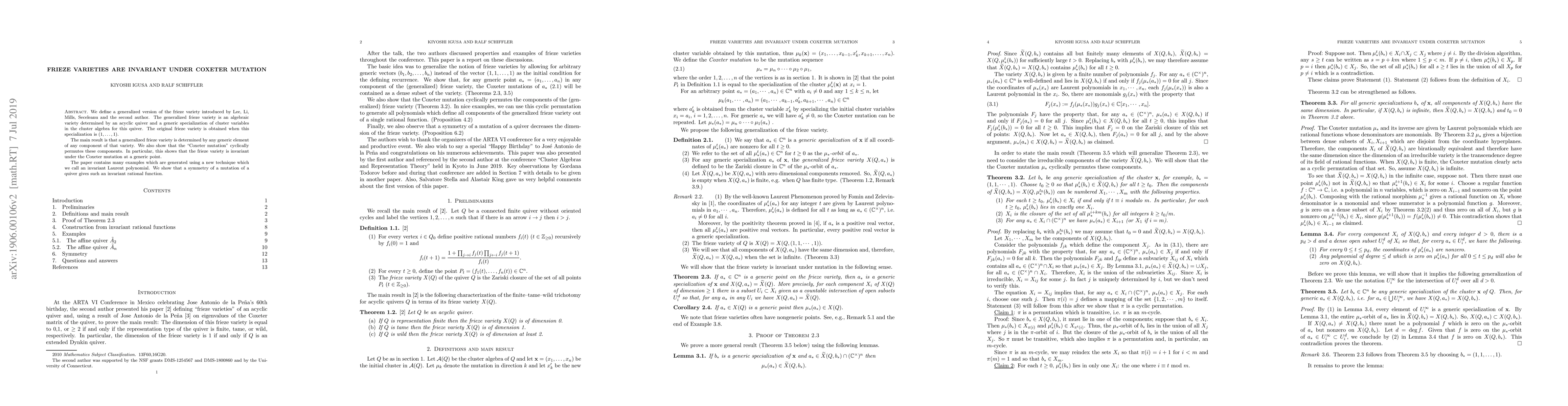 We define a generalized version of the frieze variety introduced by Lee, Li, Mills, Seceleanu and the second author. The generalized frieze variety is an algebraic variety determined by an acyclic quiver and a generic specialization of cluster variables in the cluster algebra for this quiver. The original frieze variety is obtained when this specialization is (1, . . . , 1). The main result is that a generalized frieze variety is determined by any generic element of any component of that variety. We also show that the "Coxeter mutation" cyclically permutes these components. In particular, this shows that the frieze variety is invariant under the Coxeter mutation at a generic point. The paper contains many examples which are generated using a new technique which we call an invariant Laurent polynomial. We show that a symmetry of a mutation of a quiver gives such an invariant rational function.