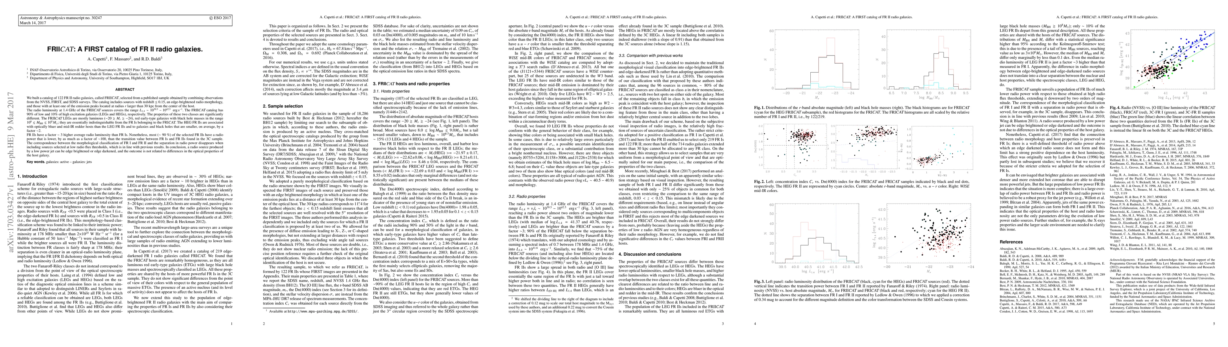 We built a catalog of 122 FR~II radio galaxies, called FRII{\sl{CAT}}, selected from a published sample obtained by combining observations from the NVSS, FIRST, and SDSS surveys. The catalog includes sources with redshift $\leq 0.15$, an edge-brightened radio morphology, and those with at least one of the emission peaks located at radius $r$ larger than 30 kpc from the center of the host. The radio luminosity at 1.4 GHz of the \FRII\ sources covers the range $L_{1.4} \sim 10^{39.5} - 10^{42.5}$ $\ergs$. The \FRII\ catalog has 90\% of low and 10\% of high excitation galaxies (LEGs and HEGs), respectively. The properties of these two classes are significantly different. The FRII{\sl{CAT}} LEGs are mostly luminous ($-20 \gtrsim M_r \gtrsim -24$), red early-type galaxies with black hole masses in the range $10^8 \lesssim M_{\rm BH} \lesssim 10^9 M_\odot$; they are essentially indistinguishable from the FR~Is belonging to the FRI{\sl{CAT}}. The HEG FR~IIs are associated with optically bluer and mid-IR redder hosts than the LEG FR~IIs and to galaxies and black holes that are smaller, on average, by a factor $\sim$2. FR~IIs have a factor $\sim$ 3 higher average radio luminosity than FR~Is. Nonetheless, most ($\sim 90$ \%) of the selected FR~IIs have a radio power that is lower, by as much as a factor of $\sim$100, than the transition value between FR~Is and FR~IIs found in the 3C sample. The correspondence between the morphological classification of FR~I and FR~II and the separation in radio power disappears when including sources selected at low radio flux thresholds, which is in line with previous results. In conclusion, a radio source produced by a low power jet can be edge brightened or edge darkened, and the outcome is not related to differences in the optical properties of the host galaxy.
