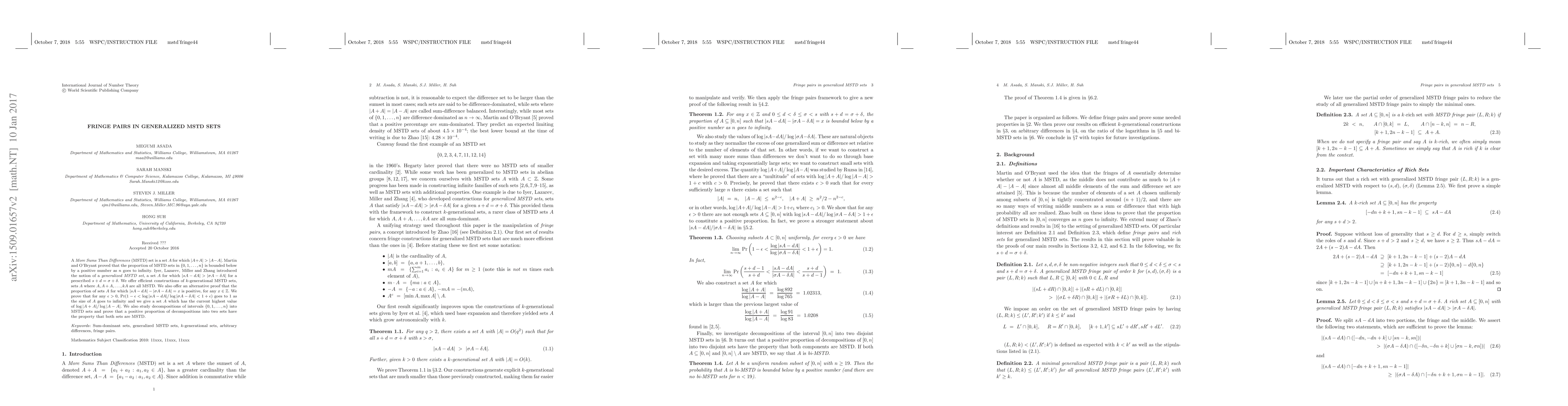 A More Sums Than Differences (MSTD) set is a set $A$ for which $|A+A|>|A-A|$. Martin and O'Bryant proved that the proportion of MSTD sets in $\{0,1,\dots,n\}$ is bounded below by a positive number as $n$ goes to infinity. Iyer, Lazarev, Miller and Zhang introduced the notion of a generalized MSTD set, a set $A$ for which $|sA-dA|>|\sigma A-\delta A|$ for a prescribed $s+d=\sigma+\delta$. We offer efficient constructions of $k$-generational MSTD sets, sets $A$ where $A, A+A, \dots, kA$ are all MSTD. We also offer an alternative proof that the proportion of sets $A$ for which $|sA-dA|-|\sigma A-\delta A|=x$ is positive, for any $x \in \mathbb{Z}$. We prove that for any $\epsilon>0$, $\Pr(1-\epsilon<\log |sA-dA|/\log|\sigma A-\delta A|<1+\epsilon)$ goes to $1$ as the size of $A$ goes to infinity and we give a set $A$ which has the current highest value of $\log |A+A|/\log |A-A|$. We also study decompositions of intervals $\{0,1,\dots,n\}$ into MSTD sets and prove that a positive proportion of decompositions into two sets have the property that both sets are MSTD.