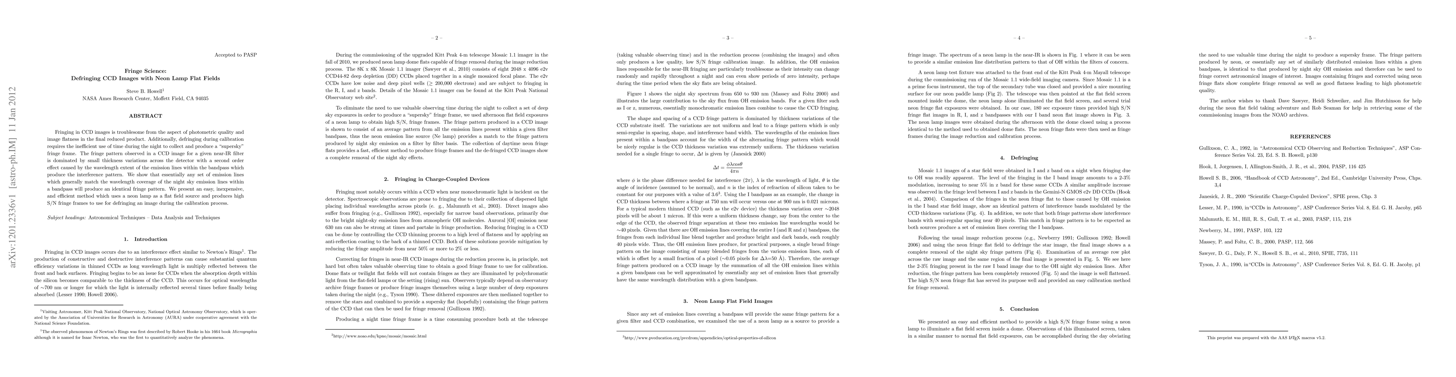Fringing in CCD images is troublesome from the aspect of photometric quality and image flatness in the final reduced product. Additionally, defringing during calibration requires the inefficient use of time during the night to collect and produce a "supersky" fringe frame. The fringe pattern observed in a CCD image for a given near-IR filter is dominated by small thickness variations across the detector with a second order effect caused by the wavelength extent of the emission lines within the bandpass which produce the interference pattern. We show that essentially any set of emission lines which generally match the wavelength coverage of the night sky emission lines within a bandpass will produce an identical fringe pattern. We present an easy, inexpensive, and efficient method which uses a neon lamp as a flat field source and produces high S/N fringe frames to use for defringing an image during the calibration process.
