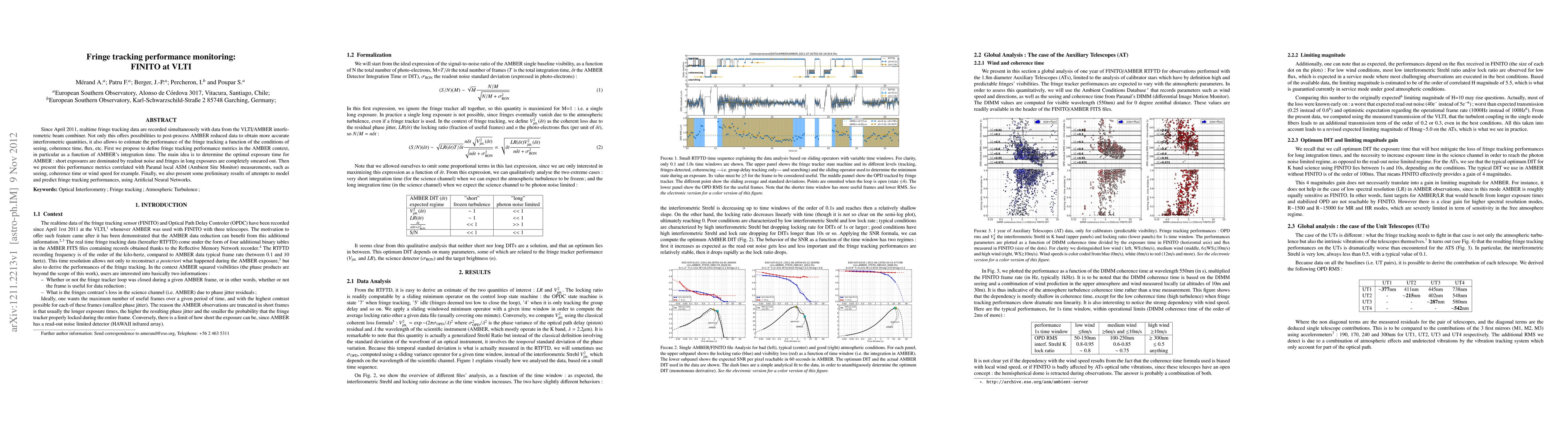 This paper introduces FINITO, a system for realtime fringe tracking performance monitoring at the VLTI, and proposes metrics to assess fringe tracking efficiency based on AMBER's integration time. It correlates these metrics with environmental factors like seeing and coherence time, and explores the use of Artificial Neural Networks to model and predict fringe tracking performance.