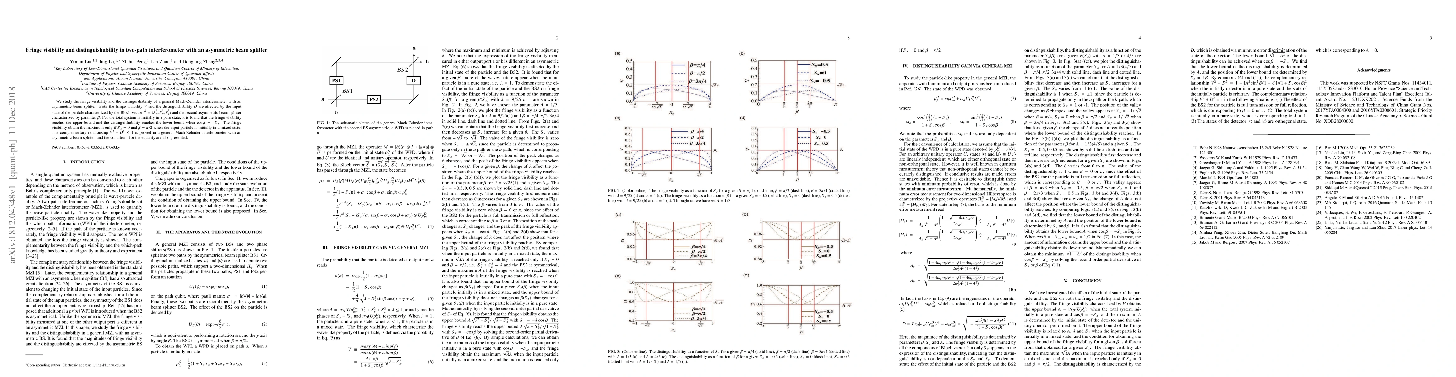 This study examines the fringe visibility and distinguishability in a Mach-Zehnder interferometer equipped with an asymmetric beam splitter, revealing that both are influenced by the input particle's state and the beam splitter's parameters. It proves a complementary relationship for the system, showing maximum fringe visibility and minimum distinguishability under specific conditions.