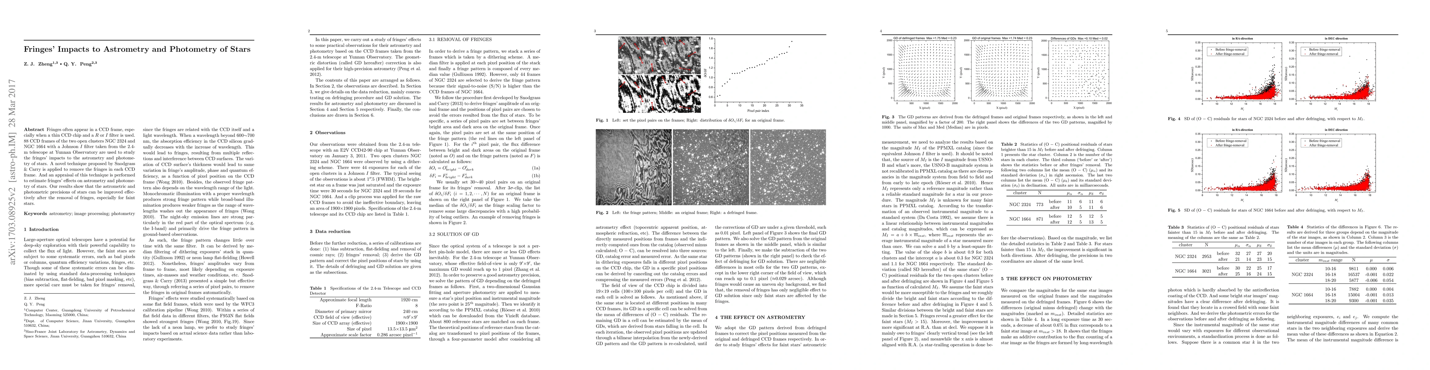 This study investigates the impact of fringes on the astrometry and photometry of stars using CCD frames from the Yunnan Observatory. Applying a novel fringe removal technique, the research demonstrates significant improvements in the precision of measurements, particularly for faint stars, after fringe elimination.