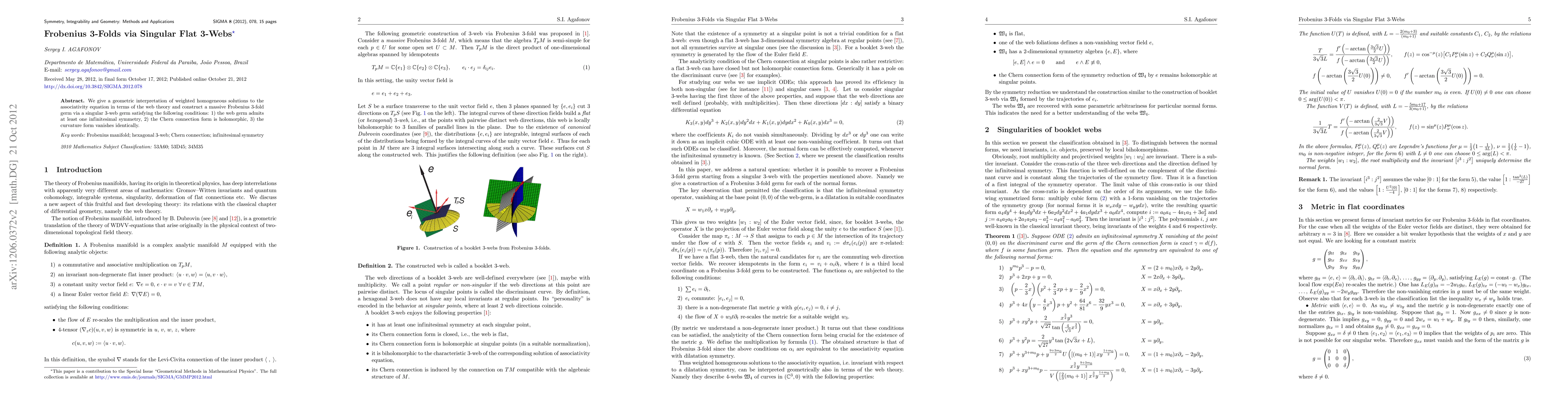 This paper interprets weighted homogeneous solutions to the associativity equation geometrically through web theory, constructing a Frobenius 3-fold germ from a singular 3-web germ that possesses an infinitesimal symmetry, a holomorphic Chern connection form, and vanishing curvature form.