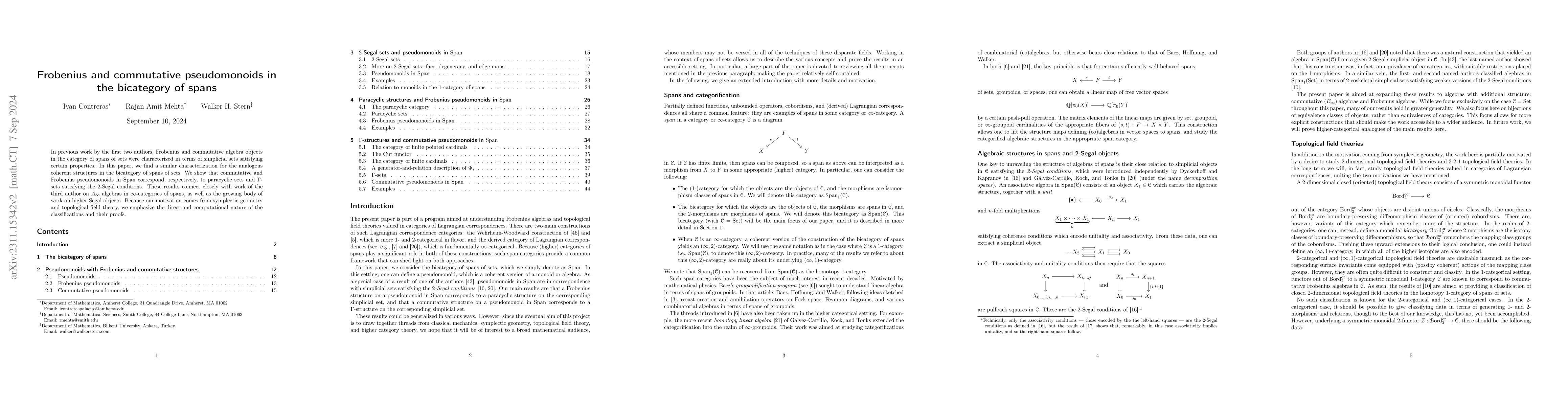 The paper introduces a characterization of commutative and Frobenius pseudomonoids in the bicategory of spans using simplicial sets and $\Gamma$-sets satisfying 2-Segal conditions, linking these to paracyclic sets.
