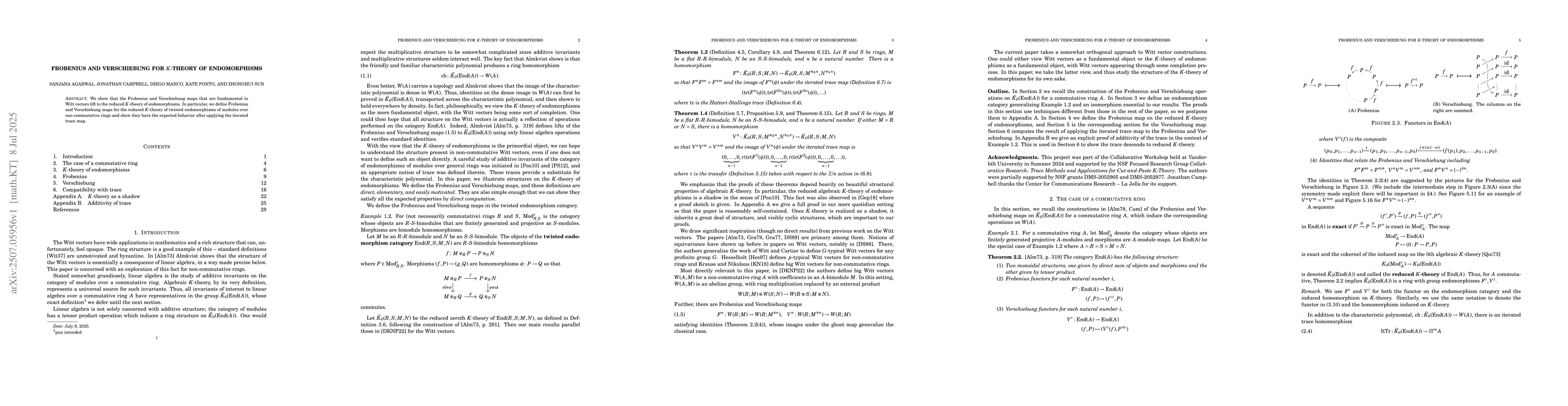 We show that the Frobenius and Verschiebung maps that are fundamental to Witt vectors lift to the reduced K-theory of endomorphisms. In particular, we define Frobenius and Verschiebung maps for the reduced K-theory of twisted endomorphisms of modules over non commutative rings and show they have the expected behavior after applying the iterated trace map