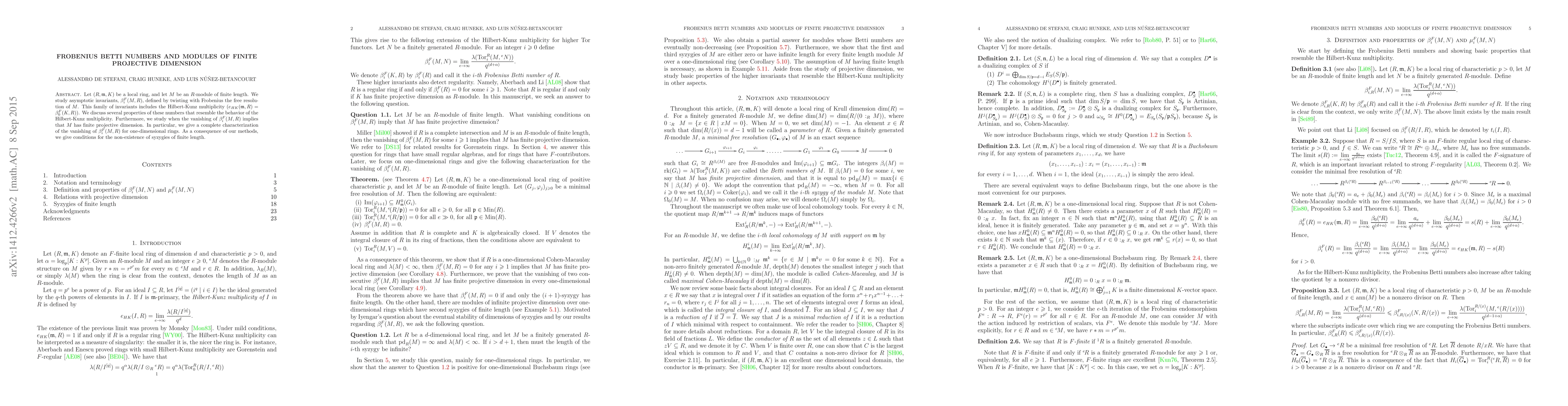 Let $(R,\mathfrak{m},K)$ be a local ring, and let $M$ be an $R$-module of finite length. We study asymptotic invariants, $\beta^F_i(M,R),$ defined by twisting with Frobenius the free resolution of $M$. This family of invariants includes the Hilbert-Kunz multiplicity ($e_{HK}(\mathfrak{m},R)=\beta^F_0(K,R)$). We discuss several properties of these numbers that resemble the behavior of the Hilbert-Kunz multiplicity. Furthermore, we study when the vanishing of $\beta^F_i(M,R)$ implies that $M$ has finite projective dimension. In particular, we give a complete characterization of the vanishing of $\beta^F_i(M,R)$ for one-dimensional rings. As a consequence of our methods, we give conditions for the non-existence of syzygies of finite length.