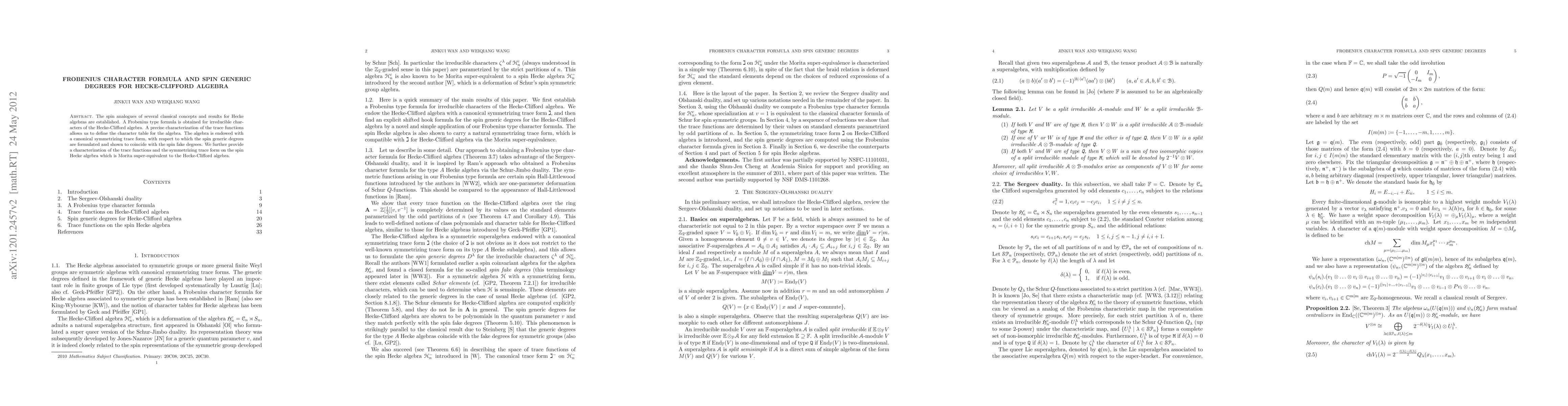 This paper establishes spin analogues of classical Hecke algebra concepts, deriving a Frobenius character formula for the Hecke-Clifford algebra and characterizing its trace functions. It defines the character table, introduces a symmetrizing trace form, and shows that spin generic degrees coincide with spin fake degrees.