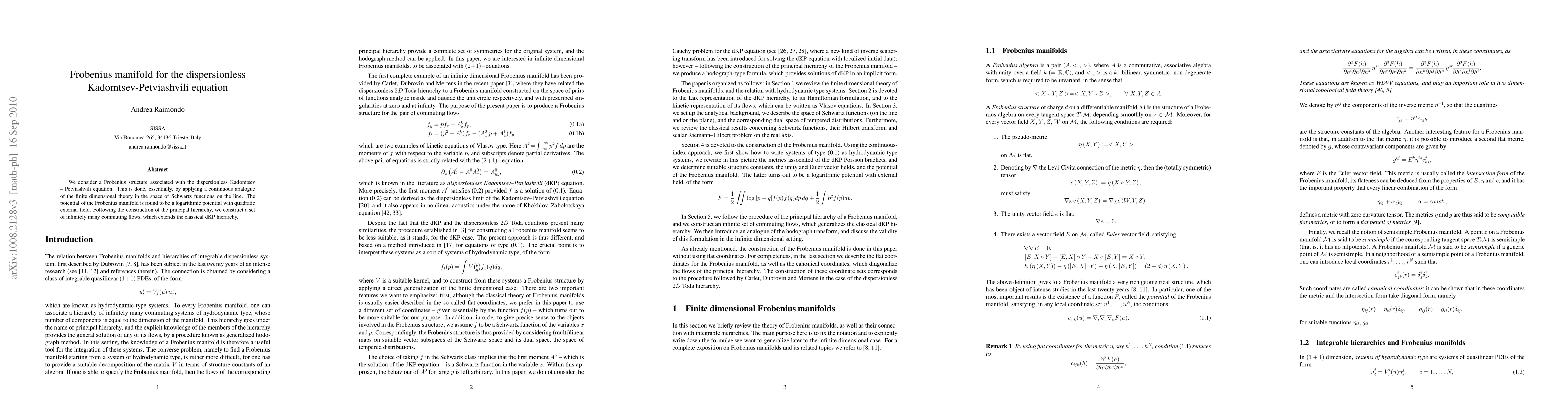 This paper explores the Frobenius structure associated with the dispersionless Kadomtsev-Petviashvili equation, revealing a logarithmic potential with a quadratic external field. It constructs a set of infinitely many commuting flows extending the classical dKP hierarchy.
