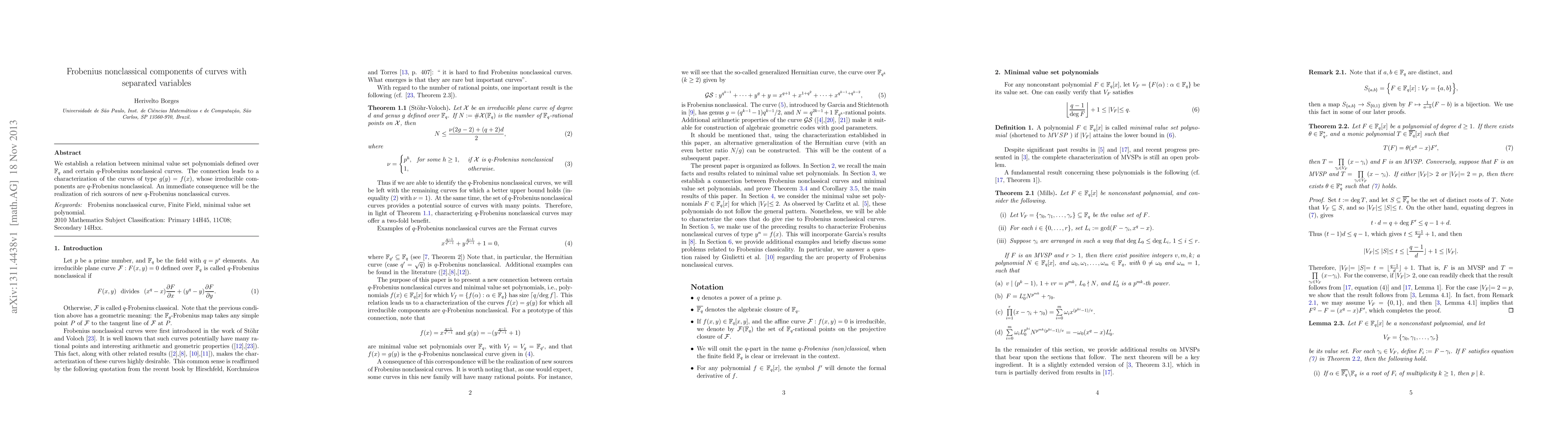 We establish a relation between minimal value set polynomials defined over $\mathbb{F}_q$ and certain $q$-Frobenius nonclassical curves. The connection leads to a characterization of the curves of type $g(y)=f(x)$, whose irreducible components are $q$-Frobenius nonclassical. An immediate consequence will be the realization of rich sources of new $q$-Frobenius nonclassical curves.