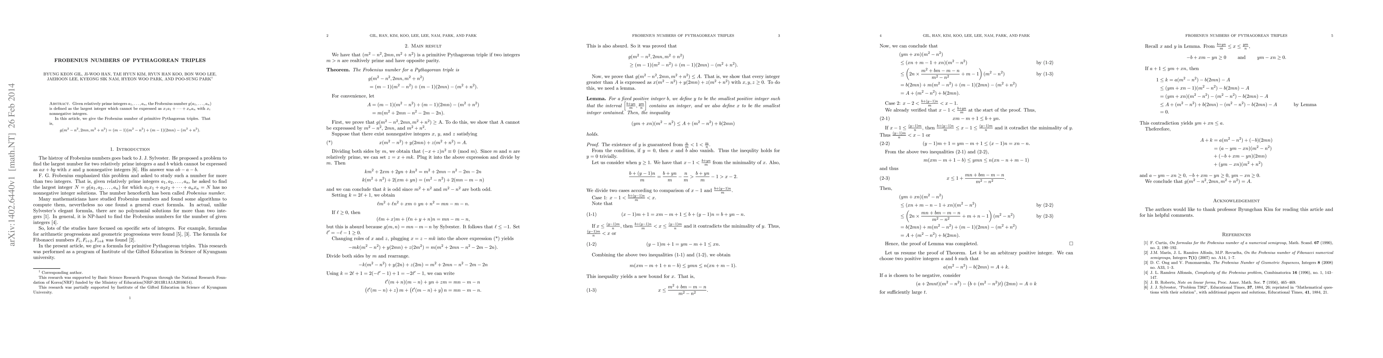 This research paper calculates the Frobenius number of primitive Pythagorean triples, finding that it can be expressed as a formula involving the variables m and n, and provides new insights into the properties of these mathematical concepts.