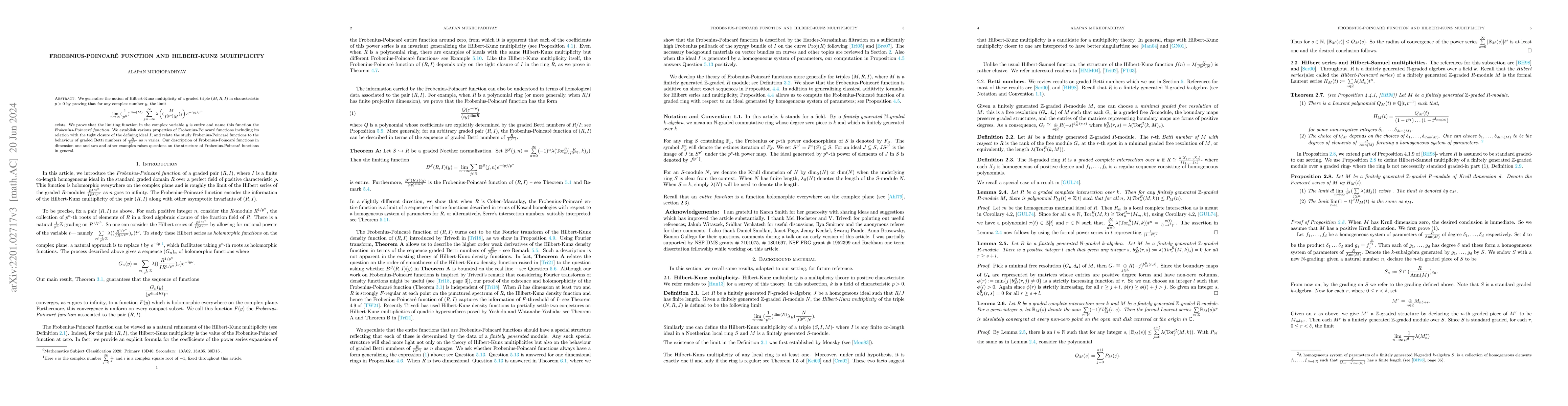 This paper generalizes the Hilbert-Kunz multiplicity by introducing the Frobenius-Poincaré function, proving its existence and entire nature. It investigates properties of this function, including its link to tight closure and graded Betti numbers, and discusses its structure in dimensions one and two.
