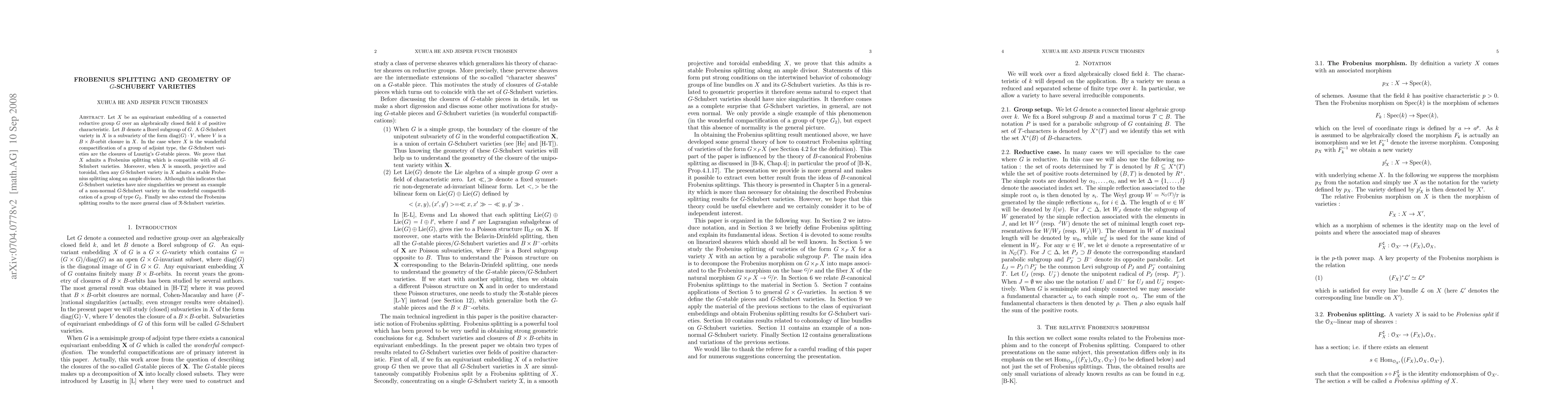 The paper proves that a connected reductive group $G$ embedded in $X$ admits a Frobenius splitting compatible with all $G$-Schubert varieties, especially in smooth, projective, and toroidal settings. It also extends these results to $\mathcal R$-Schubert varieties and presents an example of a non-normal $G$-Schubert variety.