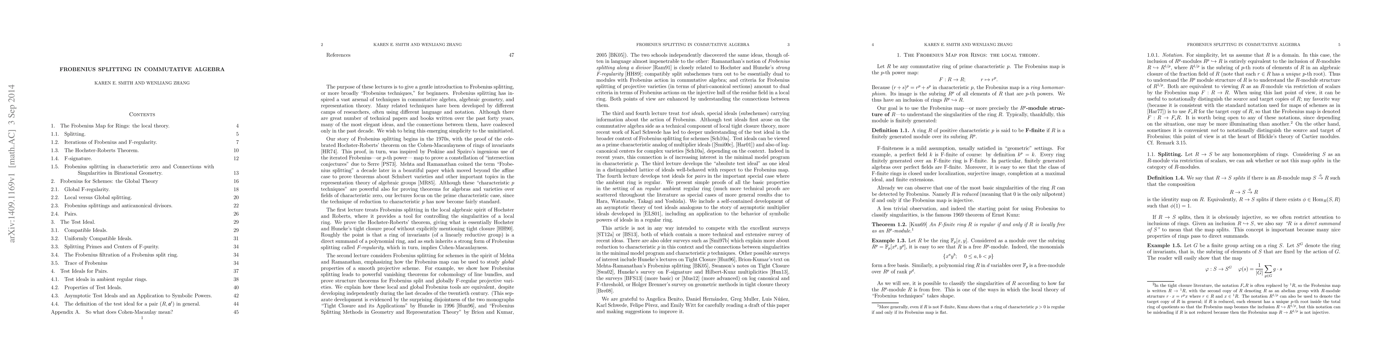 This is a survey of Frobenius splitting techniques in commutative algebra, based on the first author's lectures at the introductory workshop for the special year in commutative algebra at MSRI in fall 2012.