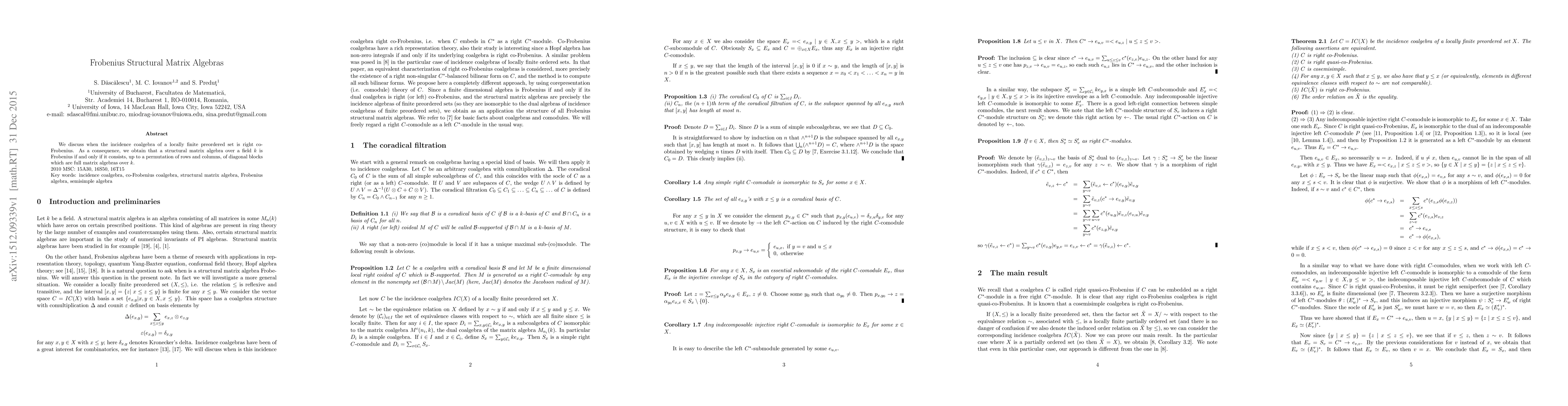 This paper investigates conditions under which the incidence coalgebra of a locally finite preordered set is right co-Frobenius, concluding that a structural matrix algebra over a field $k$ is Frobenius if it comprises diagonal blocks of full matrix algebras over $k$, up to row and column permutations.