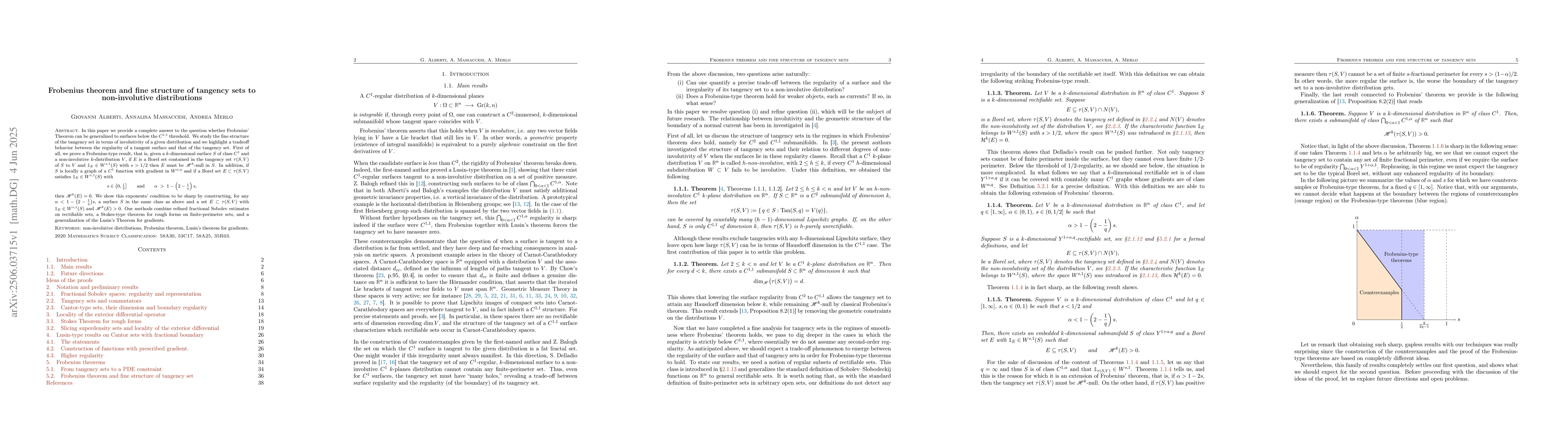 The paper presents a Frobenius-type theorem for non-involutive distributions under weaker regularity assumptions, utilizing advanced tools from geometric measure theory and calculus of variations.