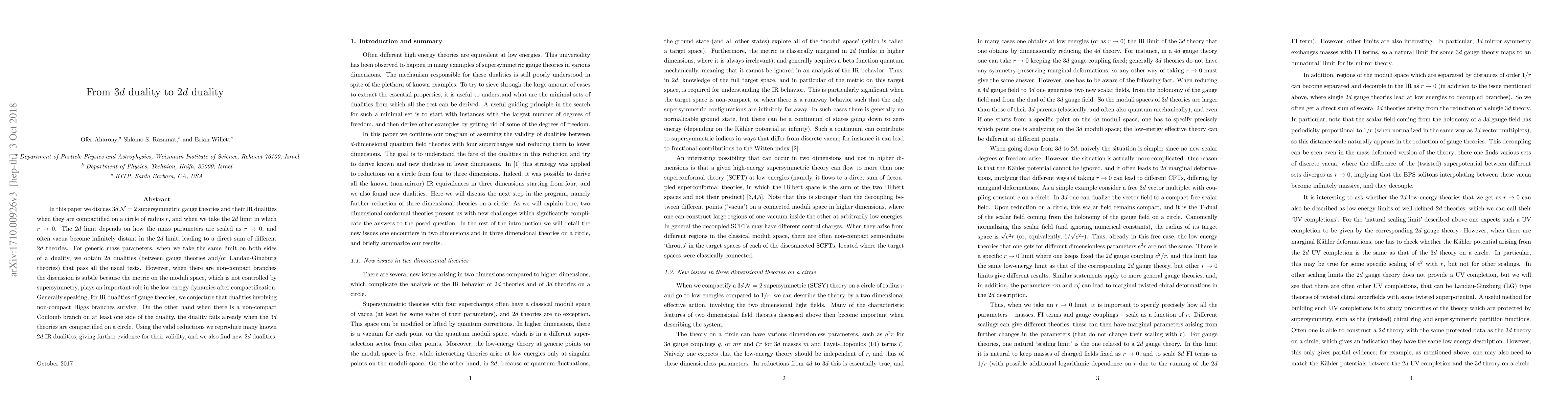 This paper explores the infrared dualities of $3d$ $\mathcal{N}=2$ supersymmetric gauge theories upon compactification on a circle and subsequent $2d$ limit, revealing that dualities often involve direct sums of different $2d$ theories. The study finds that valid $2d$ dualities emerge under specific mass parameter scalings, while non-compact branches complicate the picture due to uncontrolled moduli space metrics.