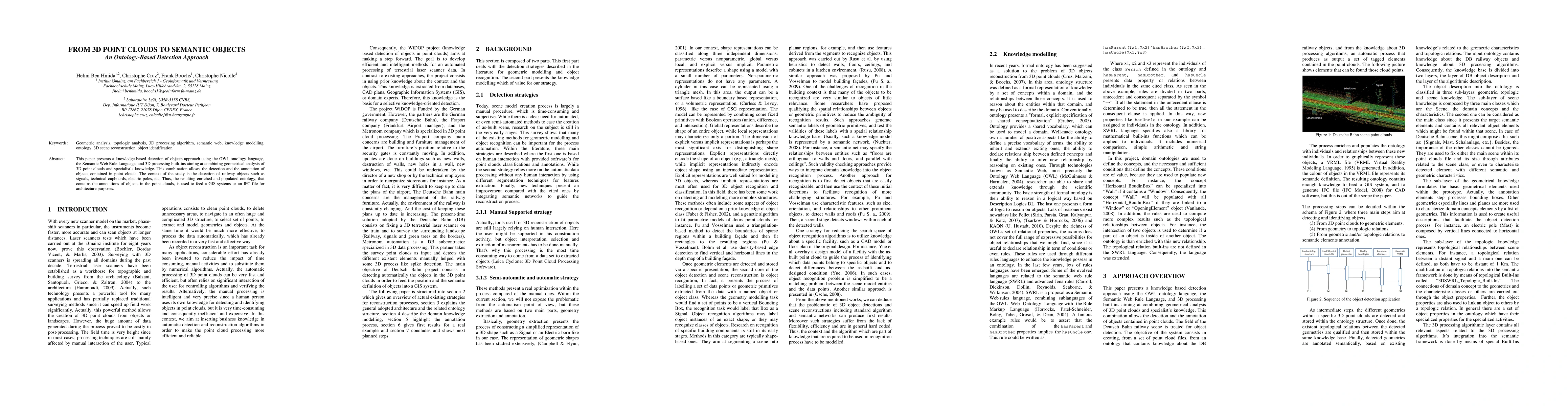 This paper proposes an ontology-based approach for detecting and annotating railway objects in 3D point clouds using OWL, SWRL, and 3D processing. The enriched ontology aids in feeding GIS systems or IFC files for architectural applications.