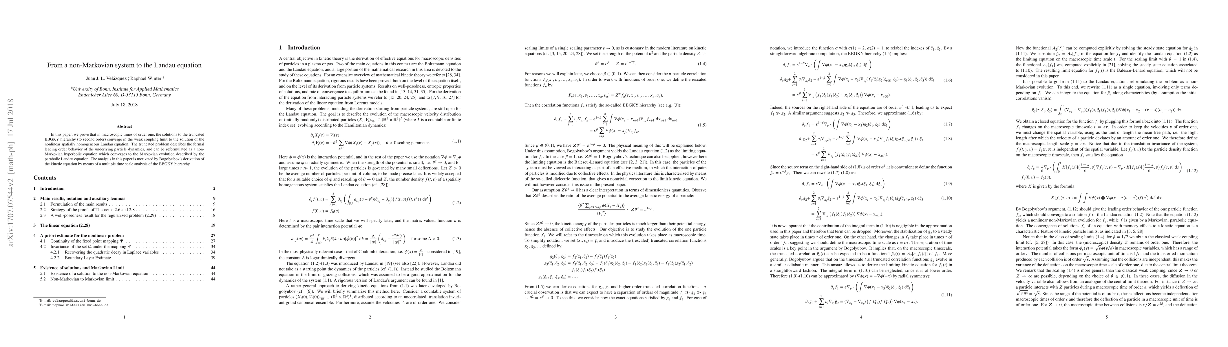 In this paper, we prove that in macroscopic times of order one, the solutions to the truncated BBGKY hierarchy (to second order) converge in the weak coupling limit to the solution of the nonlinear spatially homogeneous Landau equation. The truncated problem describes the formal leading order behavior of the underlying particle dynamics and can be reformulated as a non-Markovian hyperbolic equation, which converges to the Markovian evolution described by the parabolic Landau equation. The analysis in this paper is motivated by Bogolyubov's derivation of the kinetic equation by means of a multiple time scale analysis of the BBGKY hierarchy.
